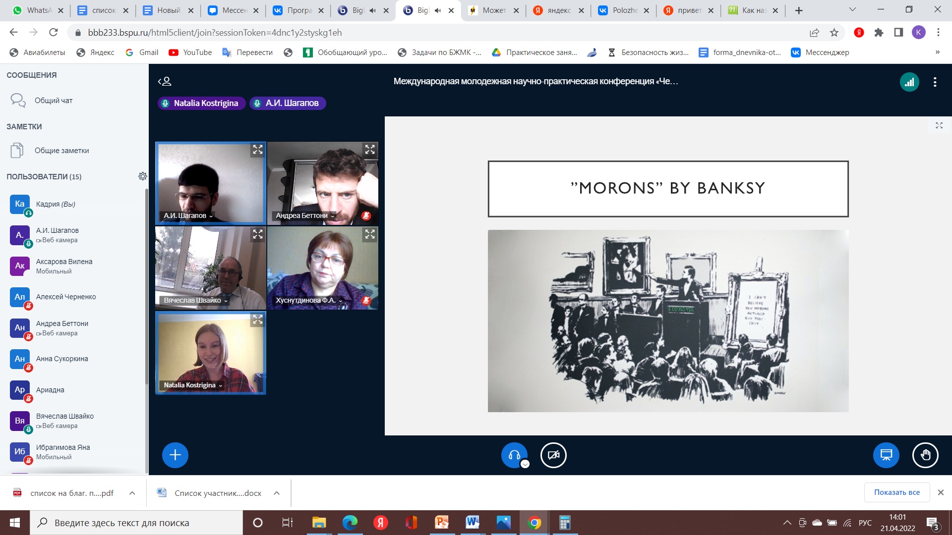 21 апреля 2022 года был дан старт XVIII Международной молодежной научно-практической конференции «Человек. Общество. Культура. Социализация». Первый день конференции представлял собой работу секции на английском языке «Current issues in the humanities and social sciences» («Актуальные проблемы гуманитарных и социальных наук»), которая была организована в дистанционном режиме.