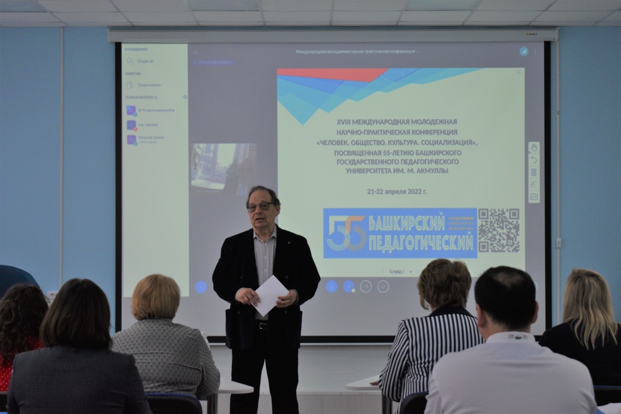 21-22 апреля 2022 г. в Башкирском государственном педагогическом университете им. М. Акмуллы прошла XVIII Международная молодежная научно-практическая конференция «Человек. Общество. Культура. Социализация». В этом году она была посвящена 55-летию Акмуллинского университета. Программа конференции была рассчитана на два дня.
