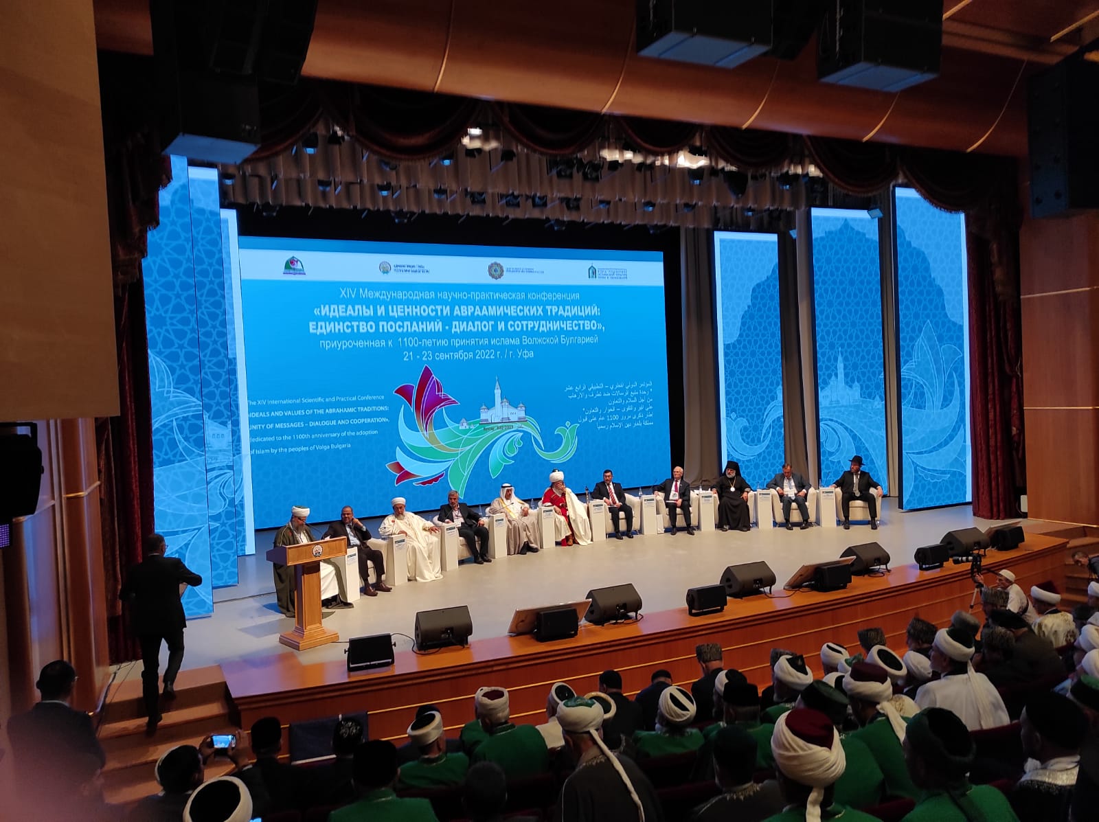 22 сентября 2022 года в Уфе, в Конгресс-холле «Торатау» открылась XIV Международная научно-практическая конференция «Идеалы и ценности авраамических традиций: Единство посланий – диалог и сотрудничество». Ставшее уже традиционным научное мероприятие собрало более 500 участников из Башкирии и регионов России, 20 стран ближнего и дальнего зарубежья. В нынешнем году конференция стала частью торжеств, посвященных 1100-летию принятия ислама Волжской Булгарией, 40-летию служения Шейх-уль-Ислама Талгата Таджуддина на посту Верховного муфтия Центрального духовного управления мусульман (ЦДУМ) России.