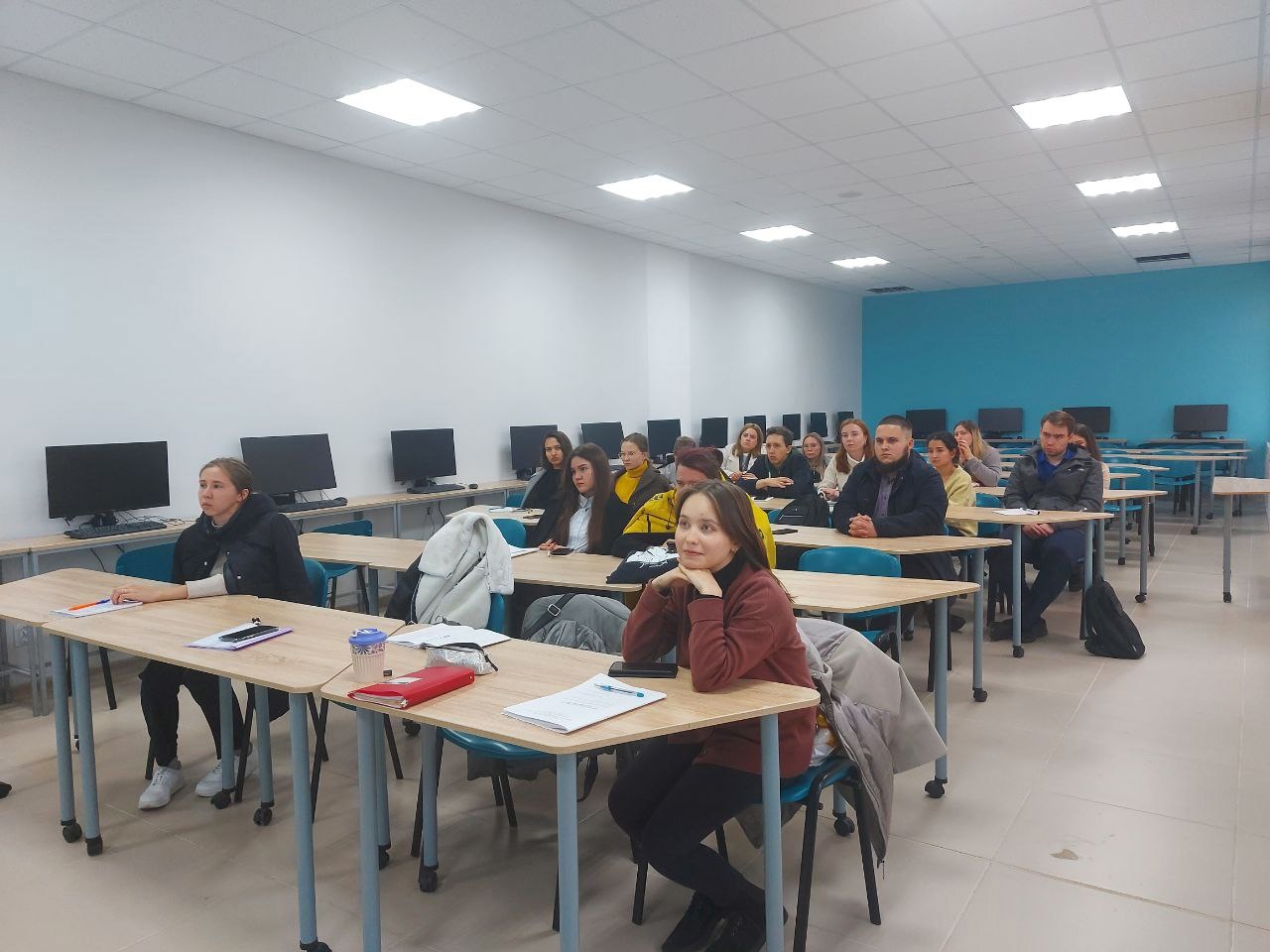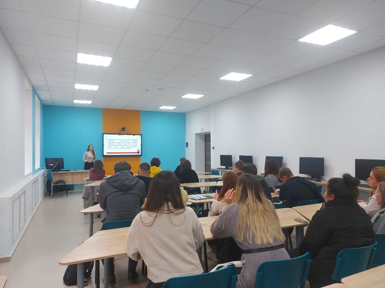 5 и 6 октября выпускники направления 44.03.05 - Педагогическое образование начали подготовку к сдаче промежуточной аттестации в форме демонстрационного экзамена по стандартам WorldSkills. В рамках обучения студенты ознакомились с документацией и структурой заданий. Студентки Яна Калашникова поделилась опытом поиска и создания обучающего мультимедийного контента для интерактивного учебного занятия и предложила различные Интернет-ресурсы; Виктория Чумакова объяснила, как подготовиться к модулю "Профессиональная педагогическая коммуникация", остановилась на вопросах анализа проблемной ситуации и процессе создания видеообращения к родителям как средства привлечения внимания родителей. Преподаватель кафедры информационных технологий Елена Жилко провела мастер-класс по современным Интернет-ресурсам, которые студенты могут применить на демонстрационном экзамене.