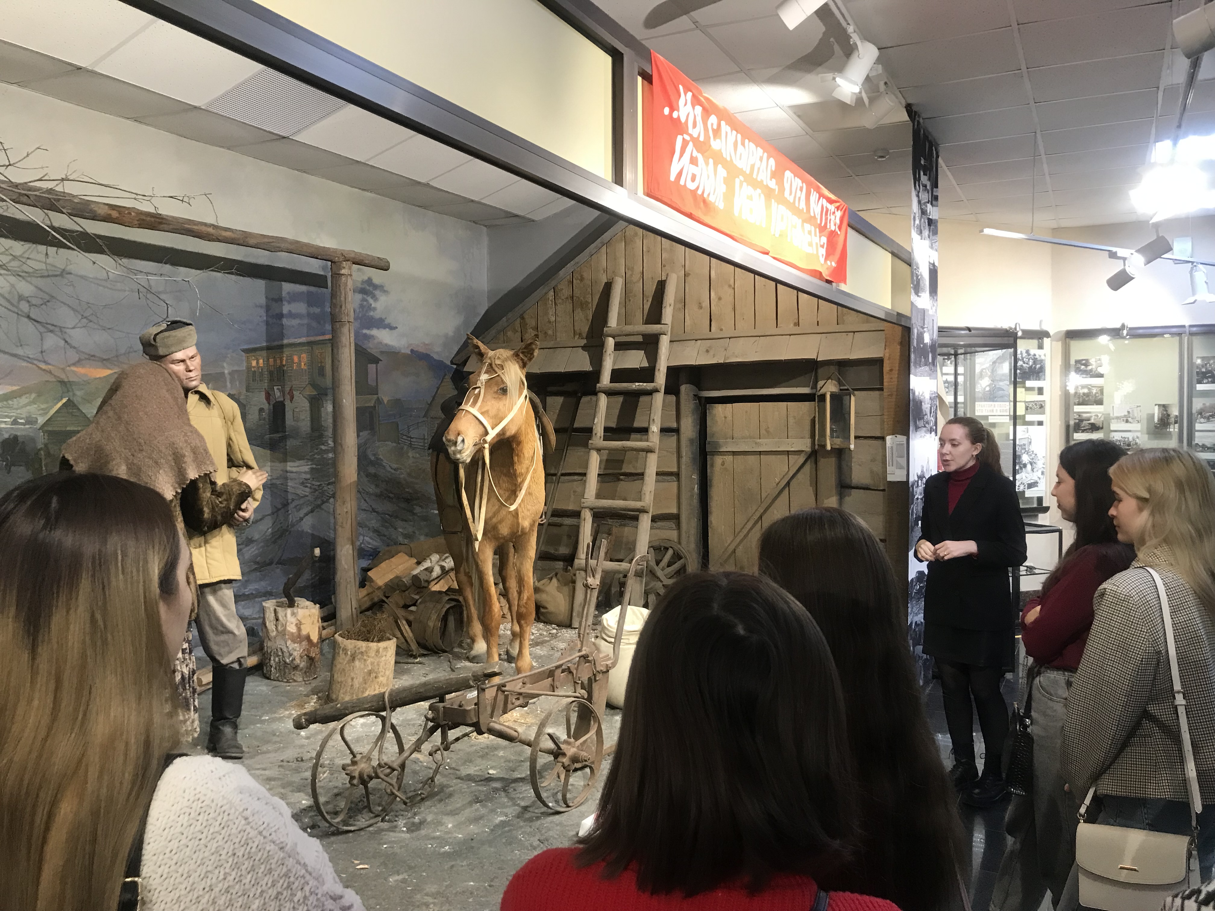 В Музее Боевой Славы практиканты познакомились с военно-исторической экспозицией, которая размещается по периметру огромного здания: вооружение, обмундирование, документы, личные вещи советских бойцов и трофейные материалы, в музее отображено партизанское движение на оккупированных территориях, эвакуация предприятий, работа тыла, подвиги наших знаменитых земляков. Основной упор был сделан на воспитательном потенциале экспозиции.