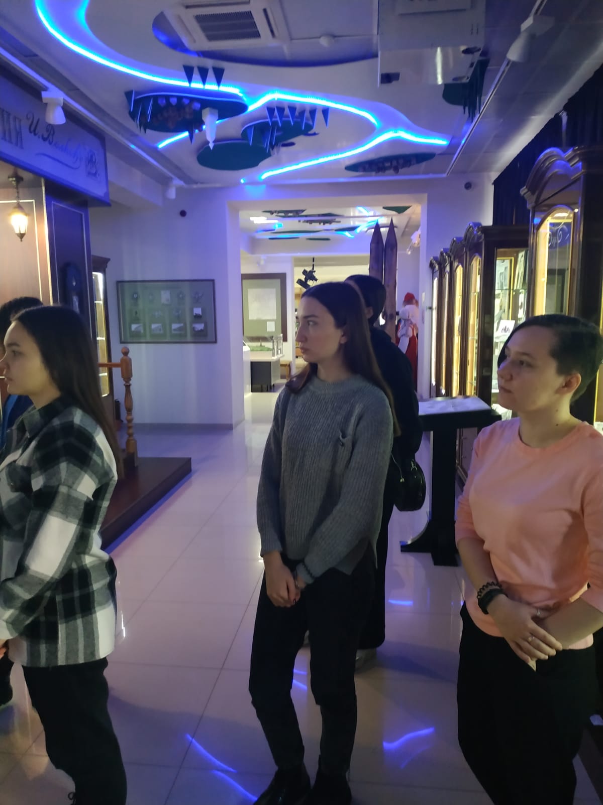 22 октября студенты 3 курса профиля «Мировая художественная культура и экономика» со старшим преподавателем кафедры культурологии и социально-экономических дисциплин М.А. Чукреевой посетили Музей истории города Уфы. На экспозициях представлены уникальные документы, предметы быта уфимских жителей разных веков. Оригинальные решения музея - «река времени», которая размещена на потолке музея, дисковый телефон с записью голосов и фотозона в стиле конца 19 века. Студенты задавали вопросы, слушали истории о Федоре Шаляпине, купце Чижове и других известных личностях.