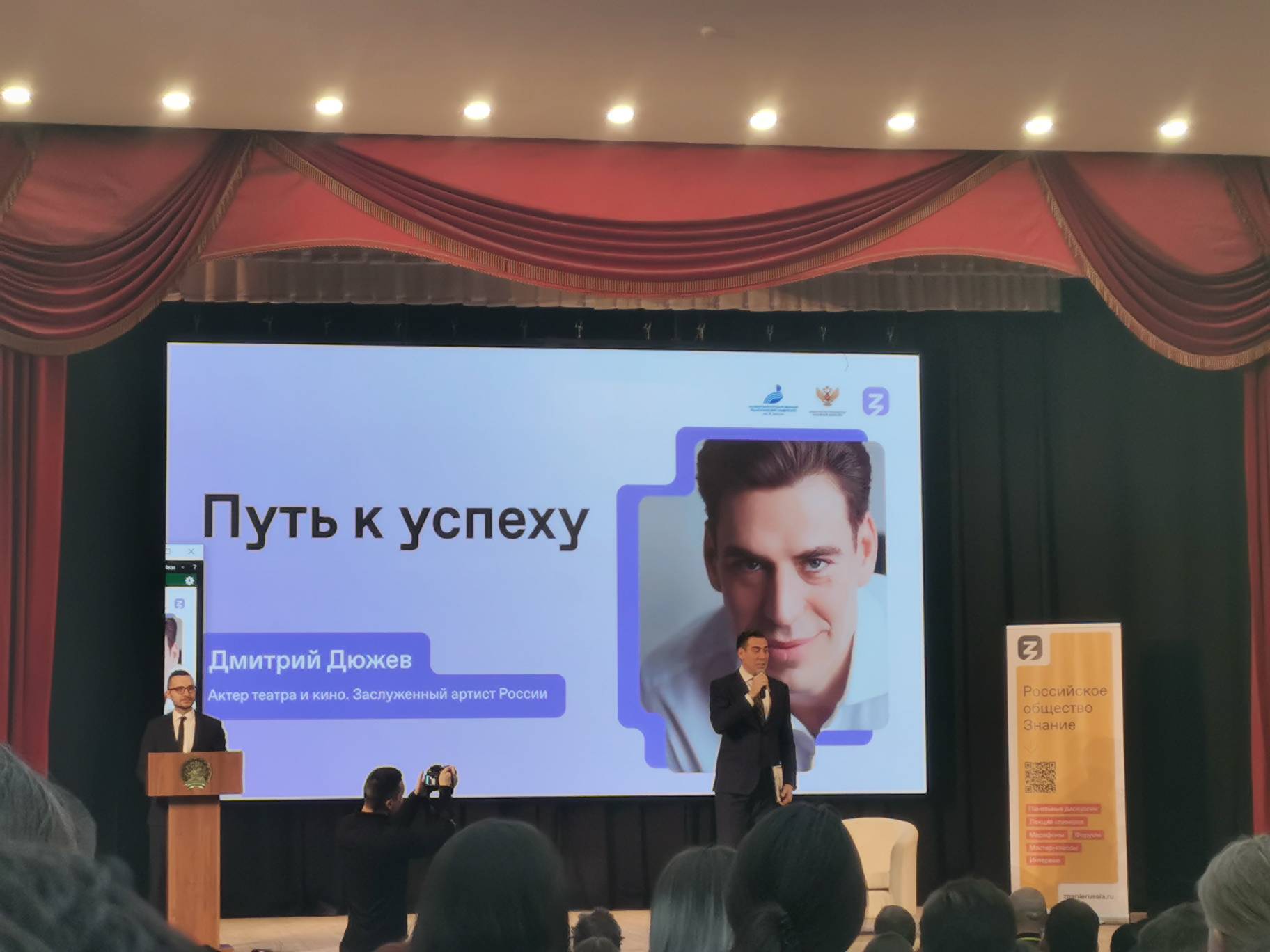 Открытие форума продолжила лекция «Путь к успеху» от актера театра и кино, заслуженного артиста Российской Федерации Дмитрия Дюжева. Знаменитый актер поделился с участниками форума рекомендациями по достижению успеха, определив, что важнейшими элементами является готовность решать проблемы, а не закрываться от них, использовать определенную мотивацию и ответственно подходить к кругу общения. Участники форума продолжили работы на других площадках: Мастер-класс «Геймификация образовательного процесса», мастер-класс «Искусство интеллигентного спора», мастер-класс «Современные возможности для будущего преподавателя».