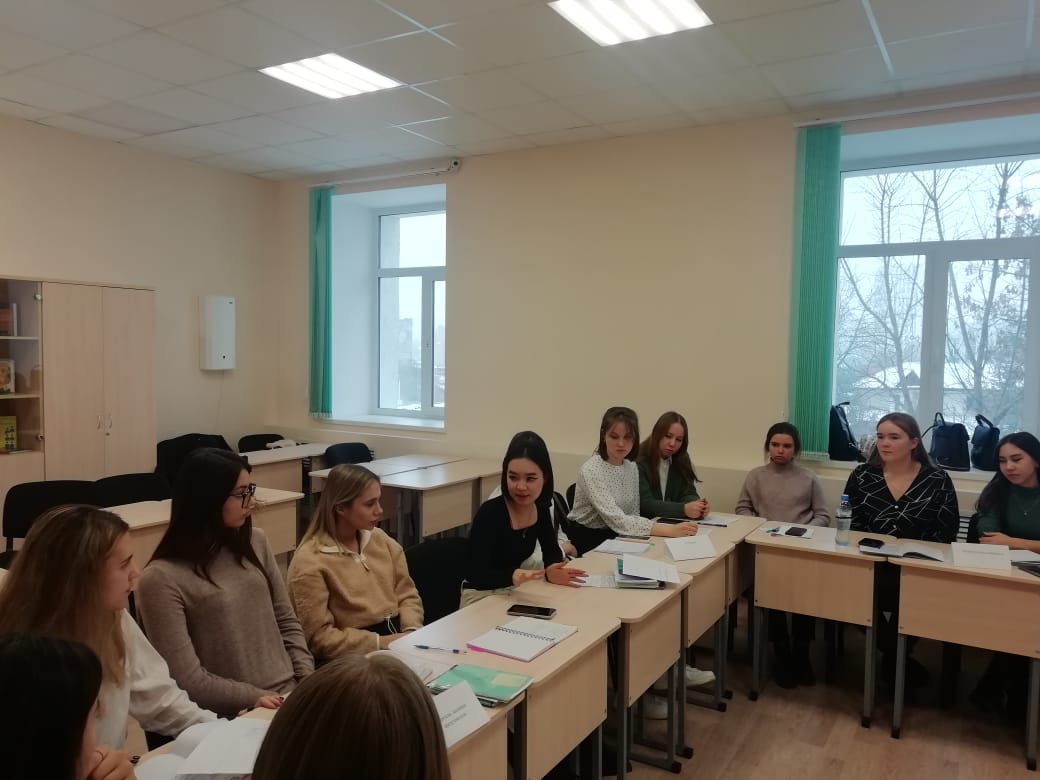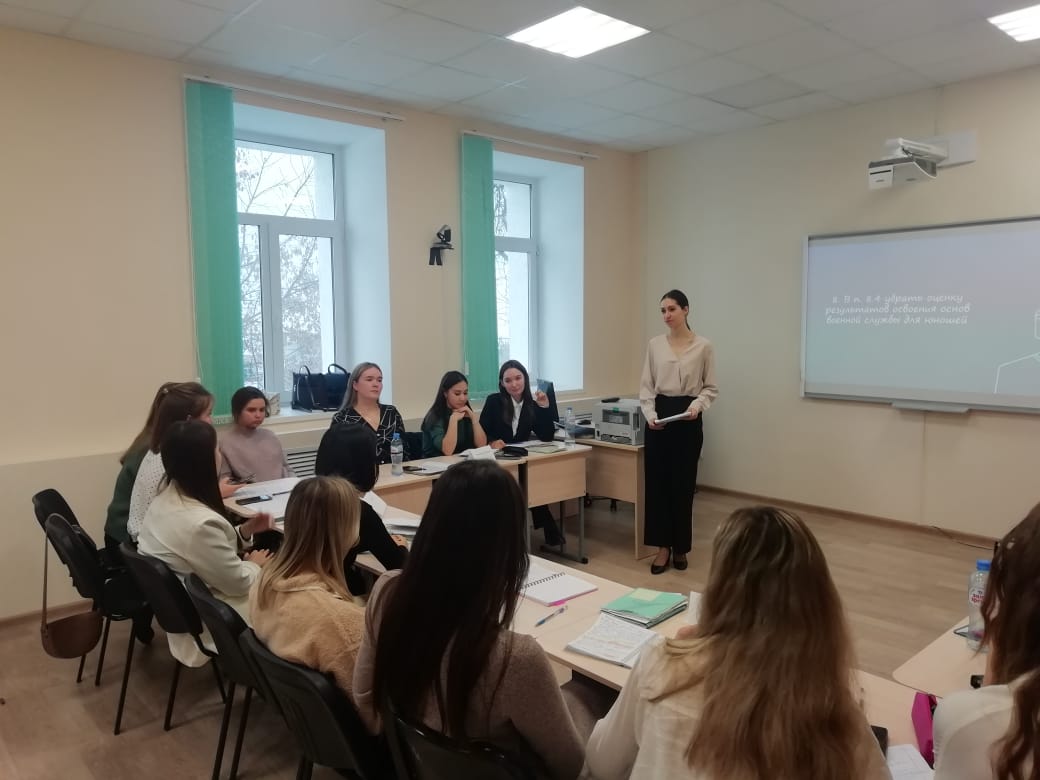 18 ноября 2022 года старший преподаватель кафедры обществознания, права и социального управления Аделия Миннигалеева провела открытое занятие со студентами 3 курса направления «Право и правоохранительная деятельность» в форме круглого стола. Студенты в интерактивной форме обсудили содержание Федерального государственного образования СПО с позиции государственных деятелей, родителей, преподавателей и студентов.