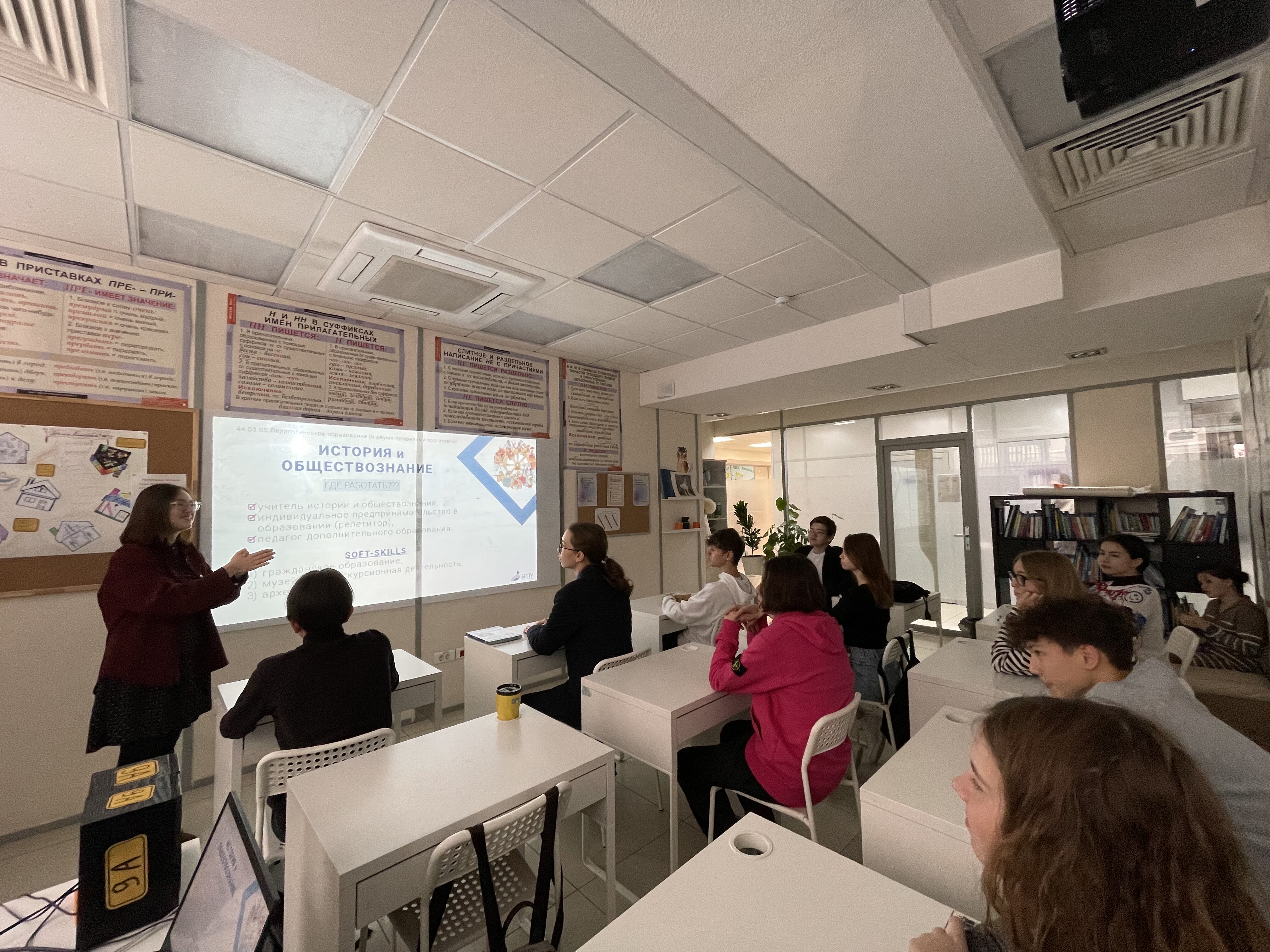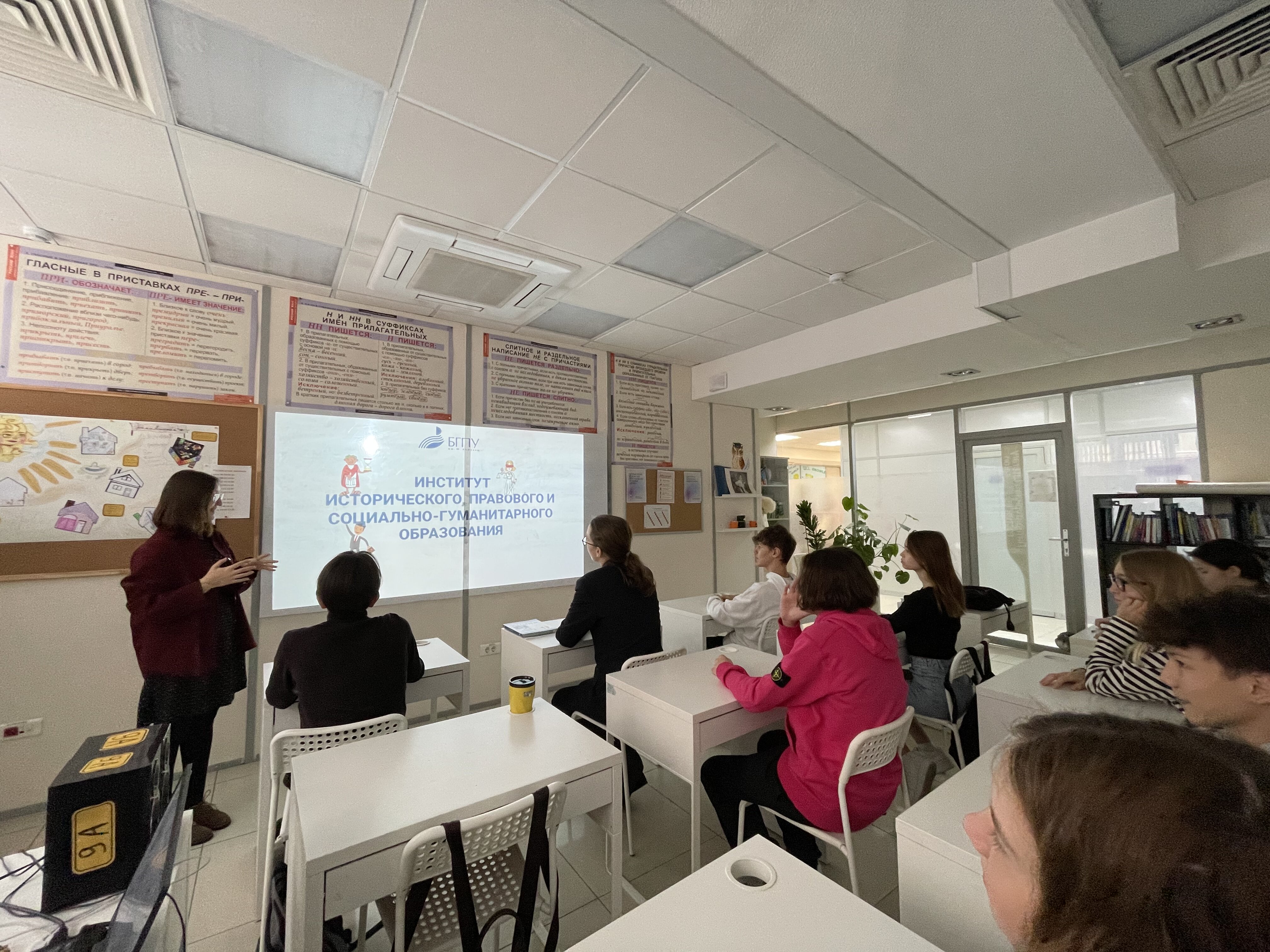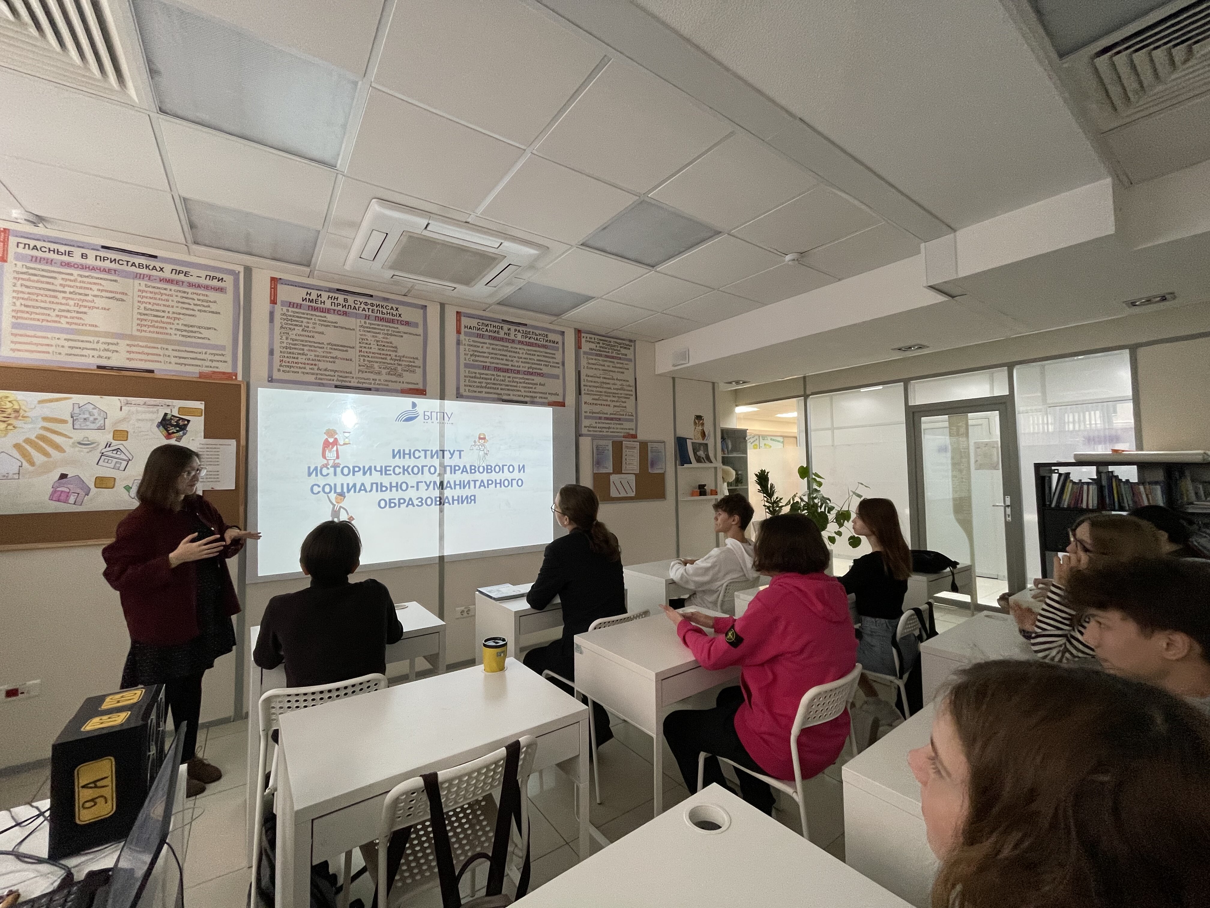 В рамках проекта "Сделай правильный выбор" на базе ОАНО "ФАНСКУЛ" студенткой 5 курса Гульгеной Урманцевой была проведена профориентационная беседа с учениками 9-10 классов. Ученики узнали об основных факторах, влияющих на успешное поступление в высшие учебные заведения. В ходе беседы они также познакомились с БГПУ им. М. Акмуллы, узнали о направлениях обучения, вступительных испытаниях и проходных баллах. Также было рассказано и о направлениях подготовки в Институте исторического, правового и социально-гуманитарного образования.
