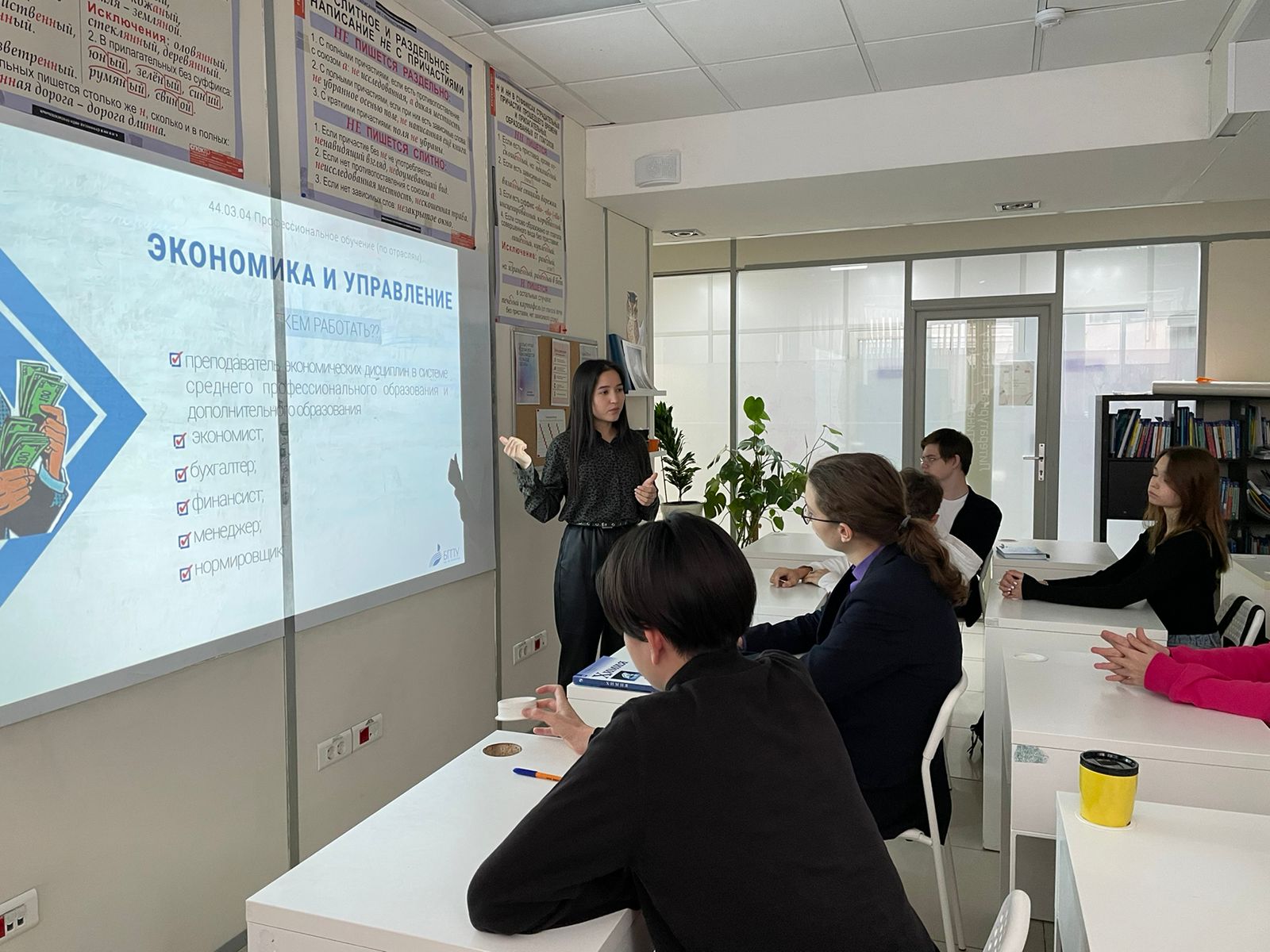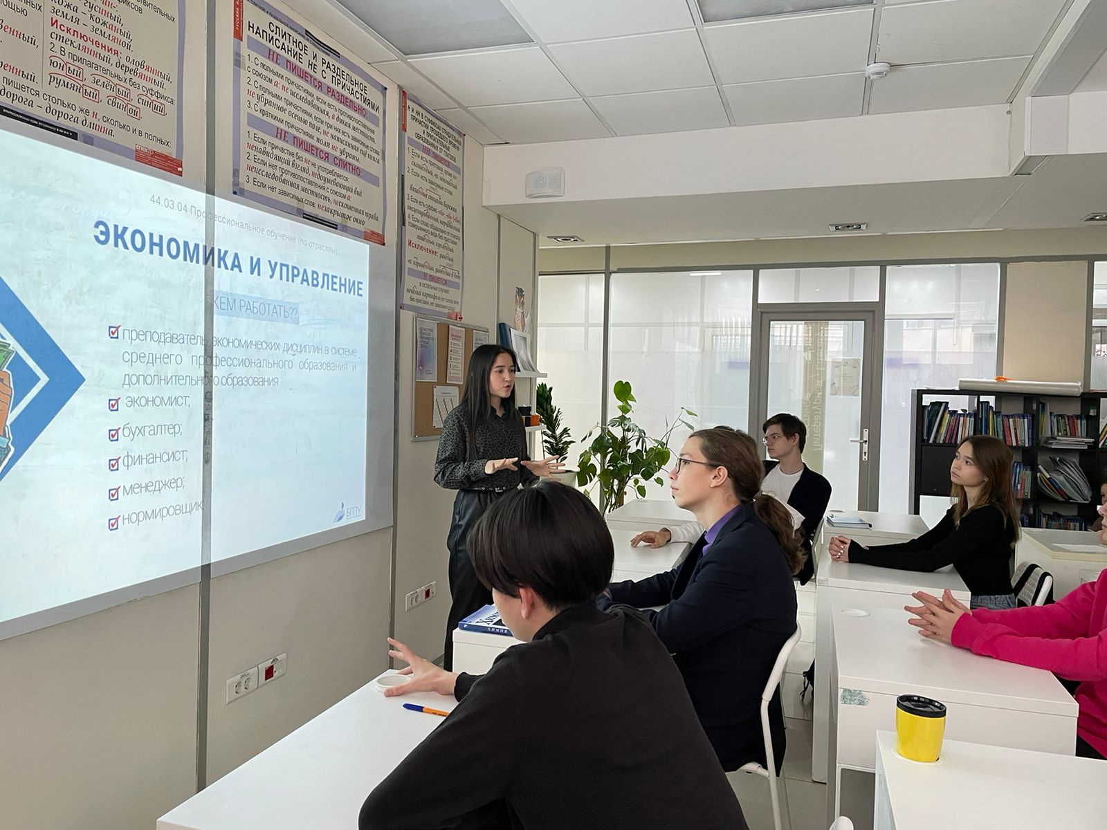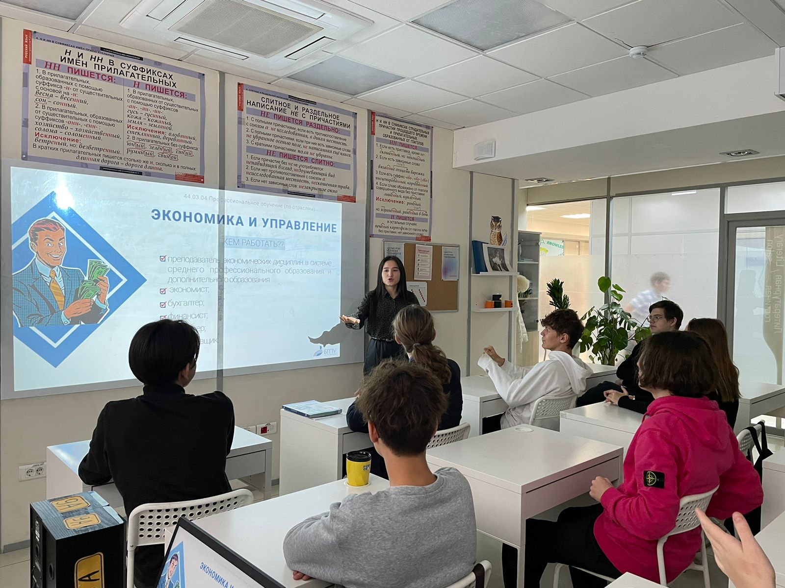 В рамках проекта "Сделай правильный выбор" на базе ОАНО "ФАНСКУЛ" студенткой 5 курса Гульгеной Урманцевой была проведена профориентационная беседа с учениками 9-10 классов. Ученики узнали об основных факторах, влияющих на успешное поступление в высшие учебные заведения. В ходе беседы они также познакомились с БГПУ им. М. Акмуллы, узнали о направлениях обучения, вступительных испытаниях и проходных баллах. Также было рассказано и о направлениях подготовки в Институте исторического, правового и социально-гуманитарного образования.