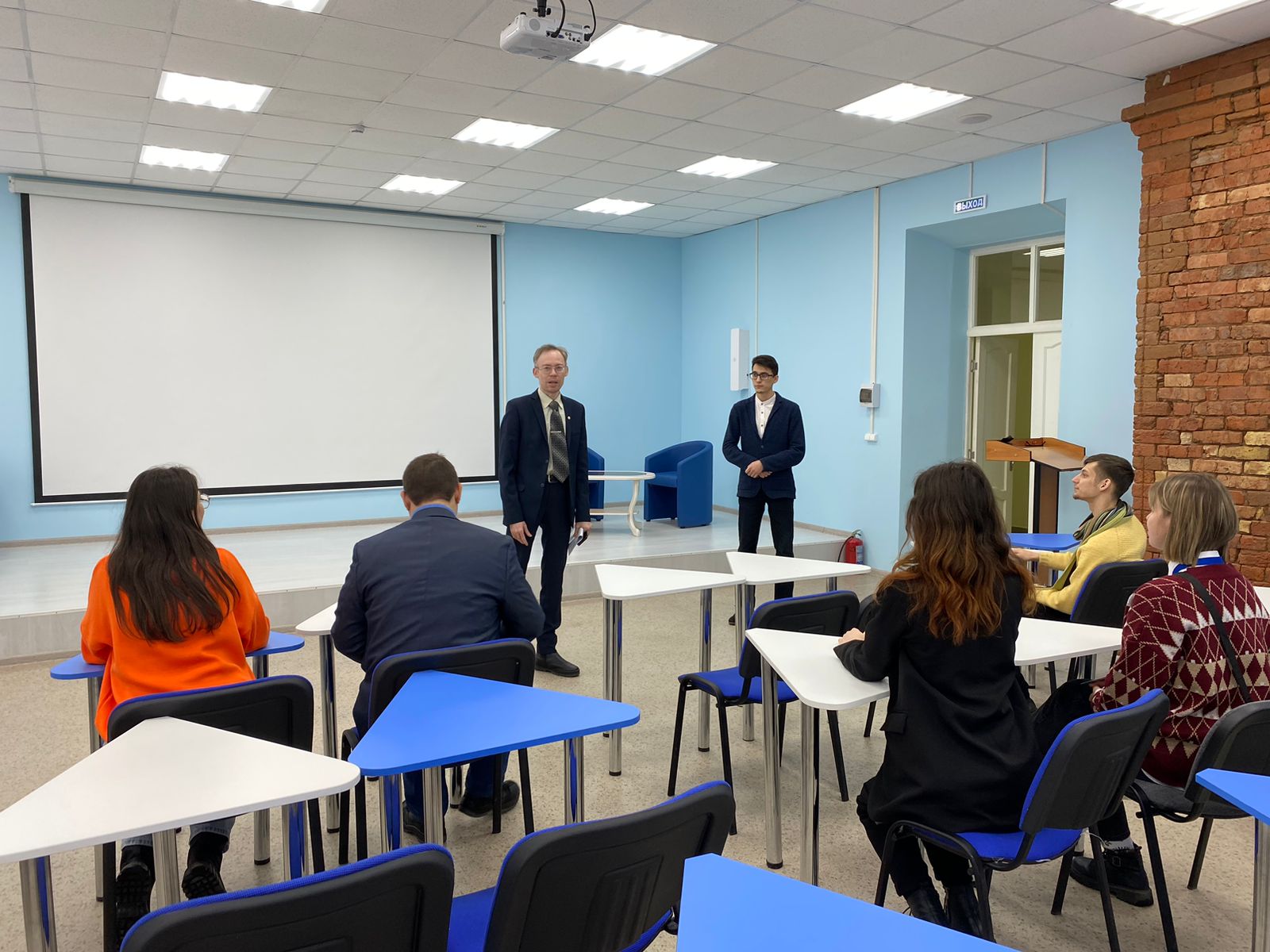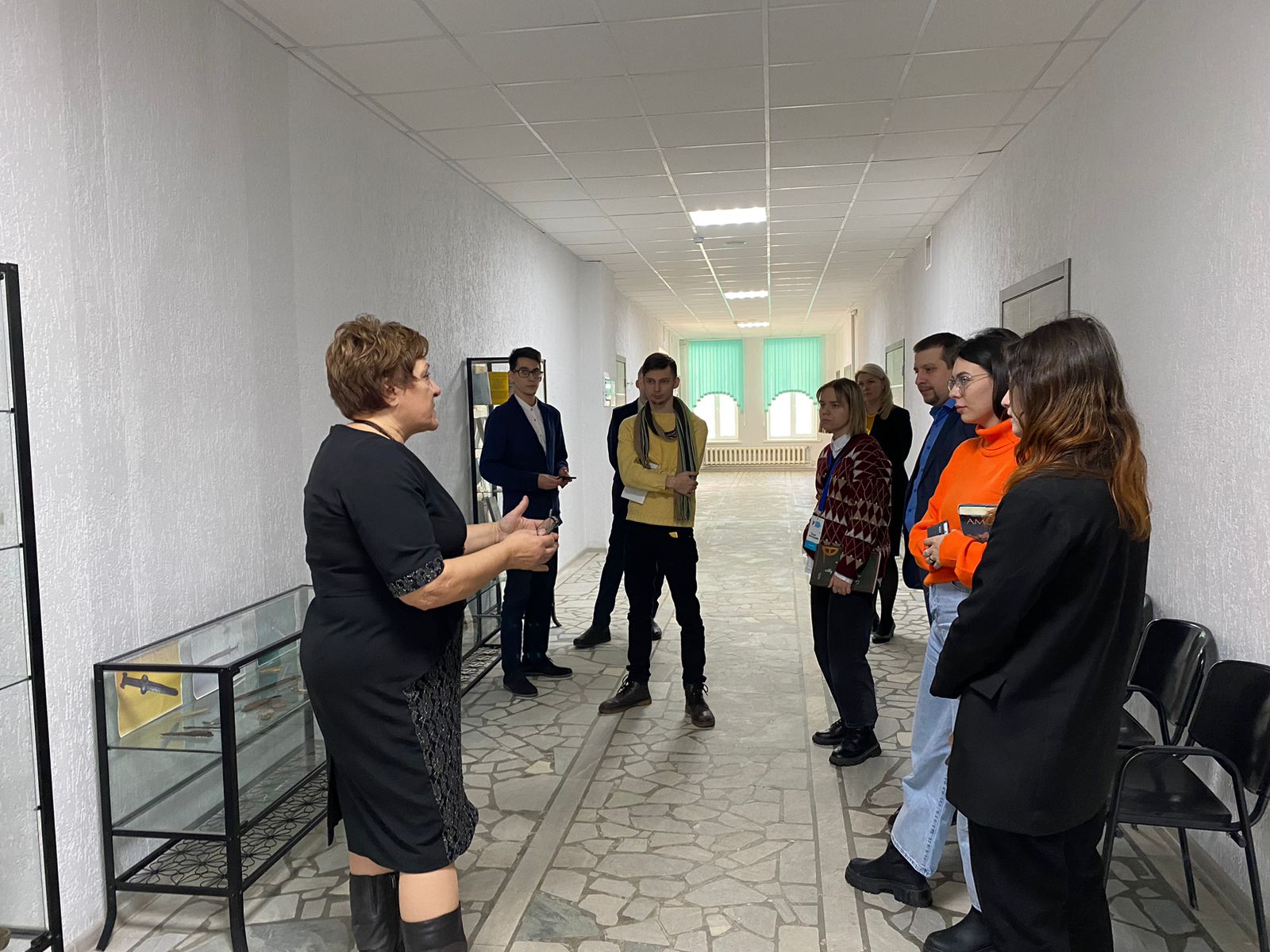 Для гостей из Волгограда, Воронежа, Глазова, Барнаула и Санкт-Петербурга была организована ознакомительная экскурсия по всему учебному корпусу. Об истории корпуса института, расположенного в том числе в здании бывшего Второго городского приходского училища (Кузнецовского училища), о направлениях деятельности и программах подготовки института рассказали доцент кафедры всеобщей истории и культурного наследия Шаисламов Альберт Рамилевич и специалист по учебно-методической работе очного отделения, заместитель директора по учебной работе очного отделения Горсков Даниил Андреевич.