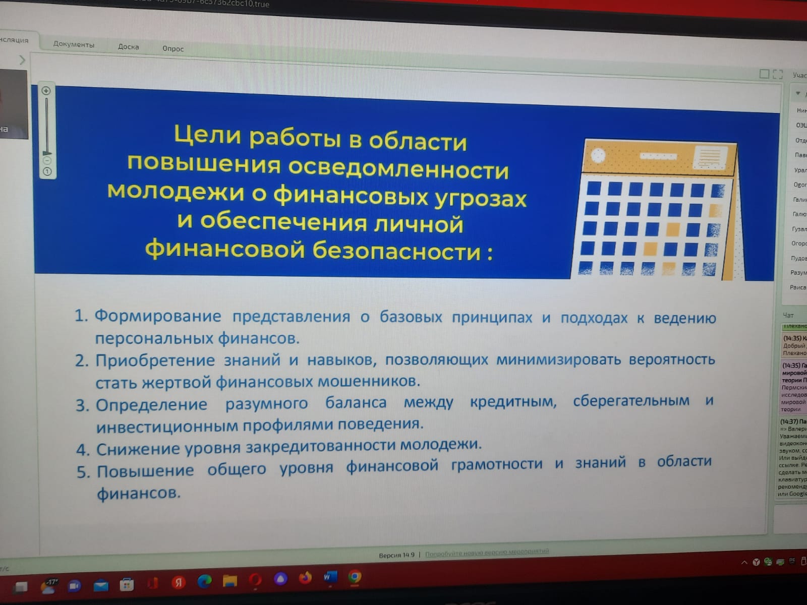 «Обмен практиками внедрения финансовой грамотности в образовательный процесс высшего учебного заведения» в дистанционном формате.  Здесь были рассмотрены следующие вопросы: