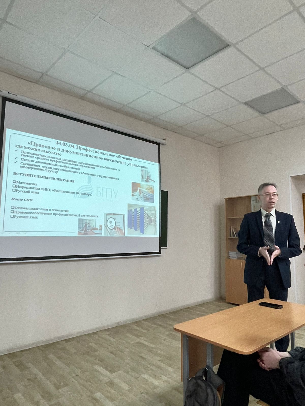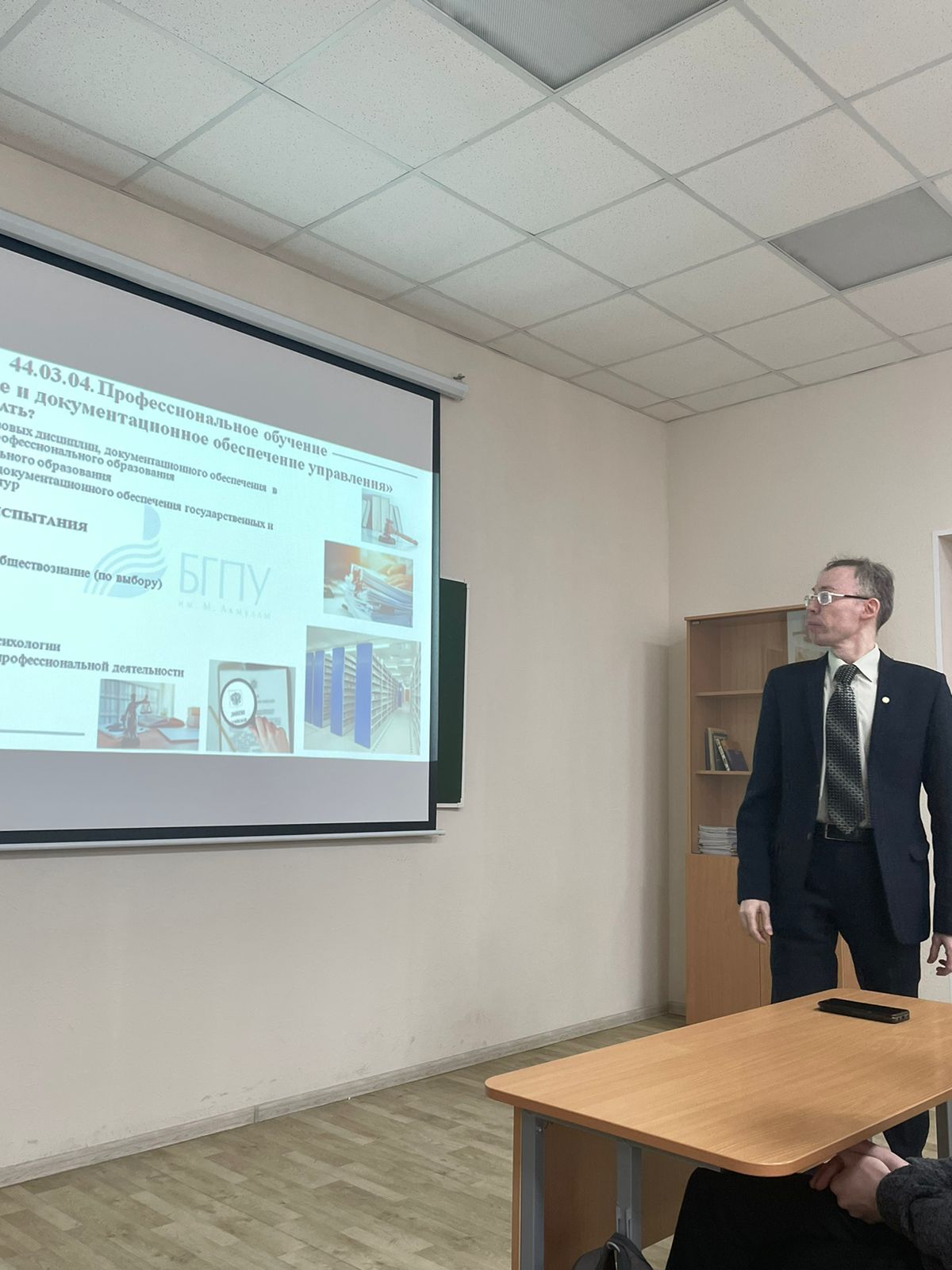 А.Р. Шаисламов ознакомил студентов колледжа с особенностями обучения на направлениях подготовки 44.03.04 Профессиональное обучение профиль «Правовое и документационное обеспечение управления» и 46.03.02 Документоведение и архивоведение профиль «Документирование управления персоналом и кадровое делопроизводство».  На все вопросы, прозвучавшие со стороны студентов в ходе встречи, преподавателями были даны развернутые ответы.