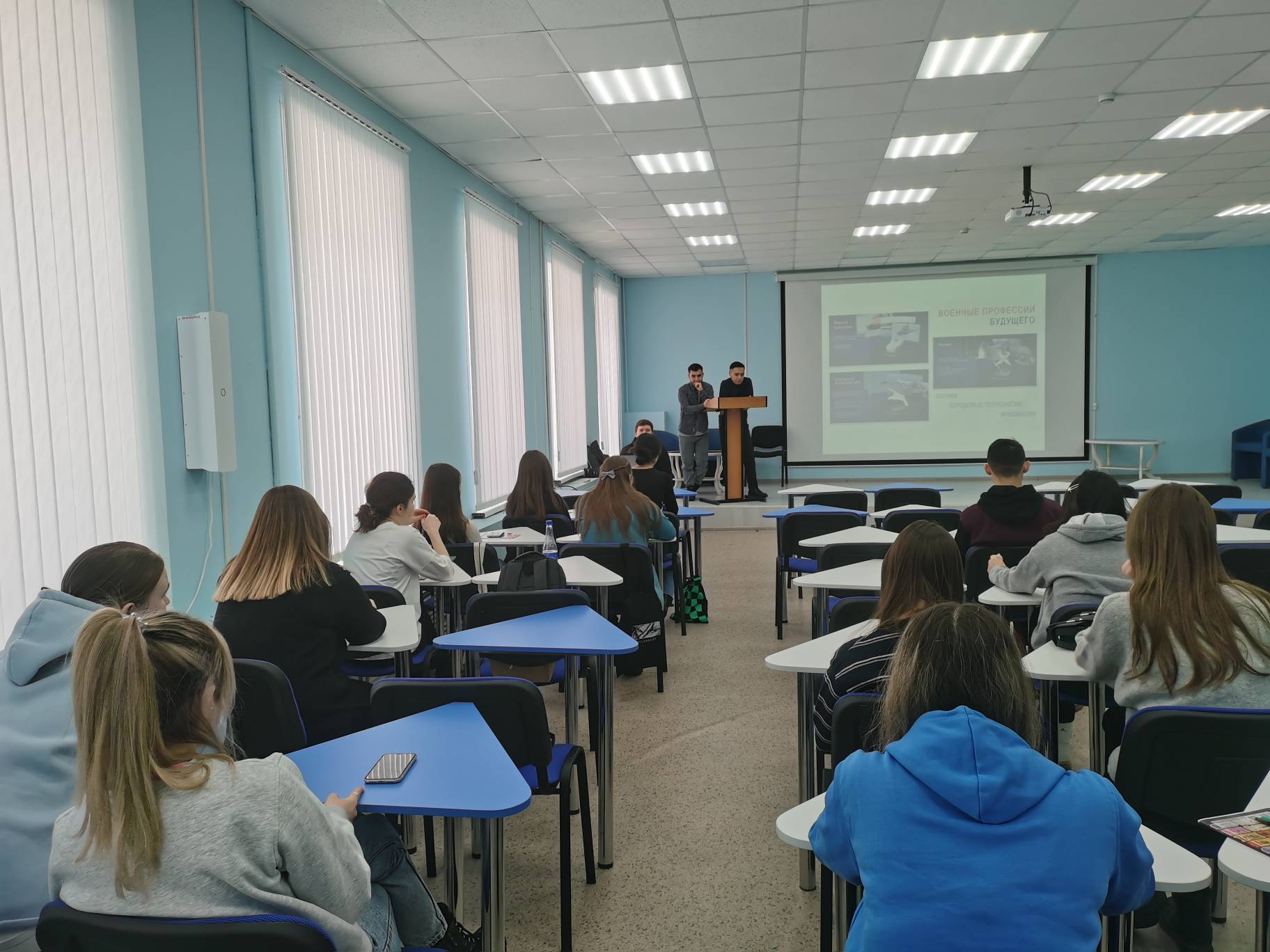В рамках проведенного классного часа, студенты-наставники напомнили первокурсникам имена героев, которые отважно защищали нашу страну - Александр Невский, Дмитрий Донской, Дмитрий Пожарский, Кузьма Минин, Иван Сусанин, М. И. Кутузов, А.В.Суворов,  П. И. Багратион, Н. Н. Раевский, П.С.Нахимов, Ф.Ф.Ушаков, обсудили исторические  и современные факты, подтверждающие оборонительный характер военной доктрины нашей страны, выделили  ценности, которые делают нашу армию великой –патриотическая верность, честь, стойкость, солидарность, сила воли.