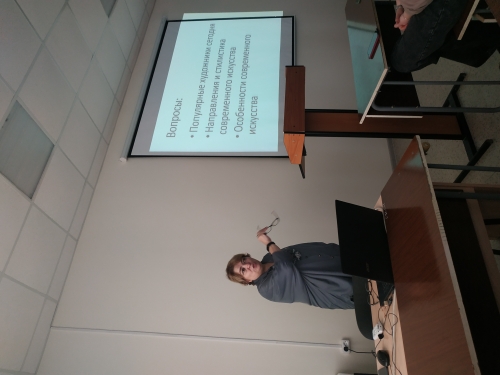 Лектор Е.Д. Жукова объясняла как искусство может делить пространство и время на до и после, менталитет художников и дизайнеров разных стран, удивляла фактами о технике пластификации, доказала, что современное искусство это не просто эпатаж. Лекторий сопровождался яркой и содержательной презентацией.
