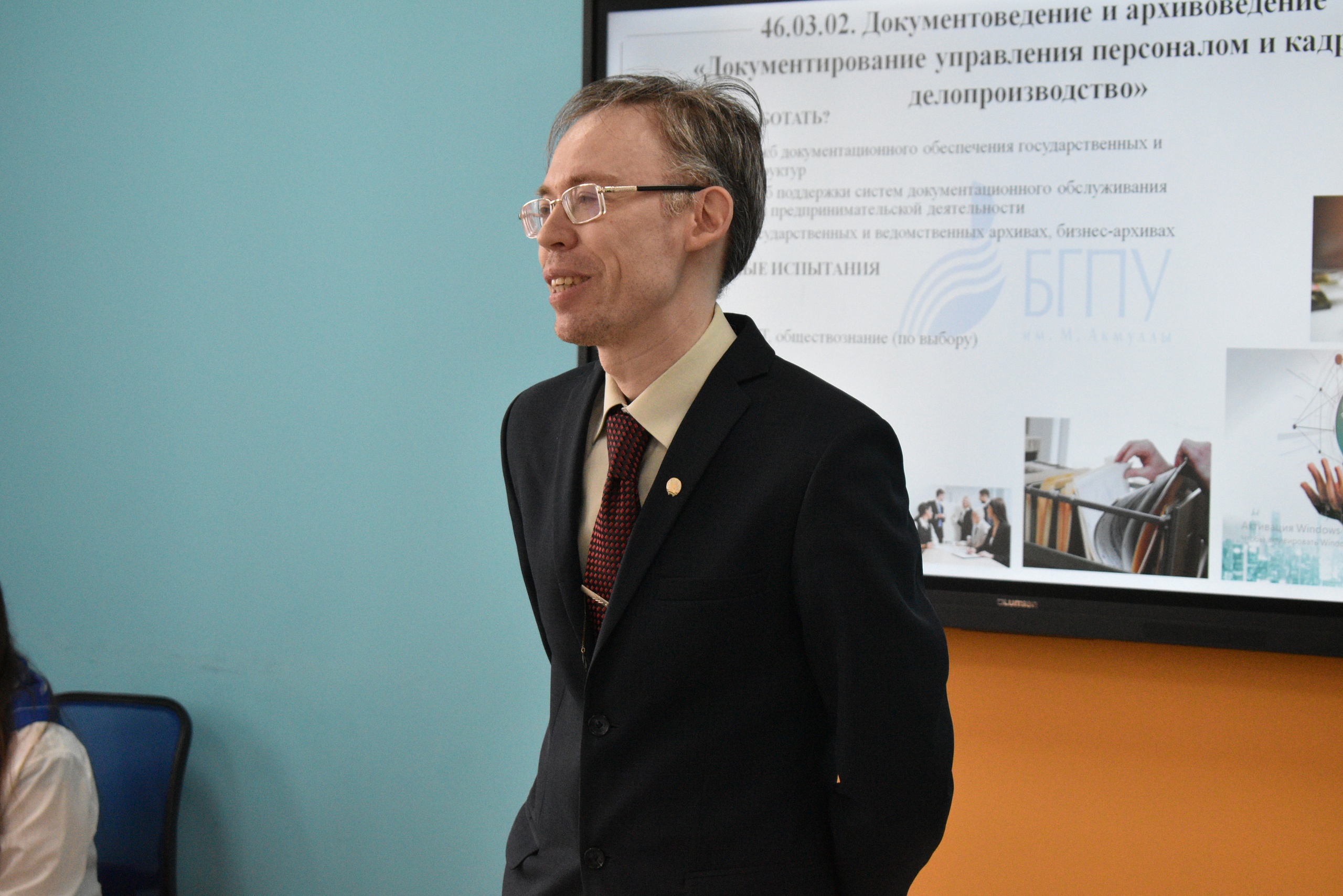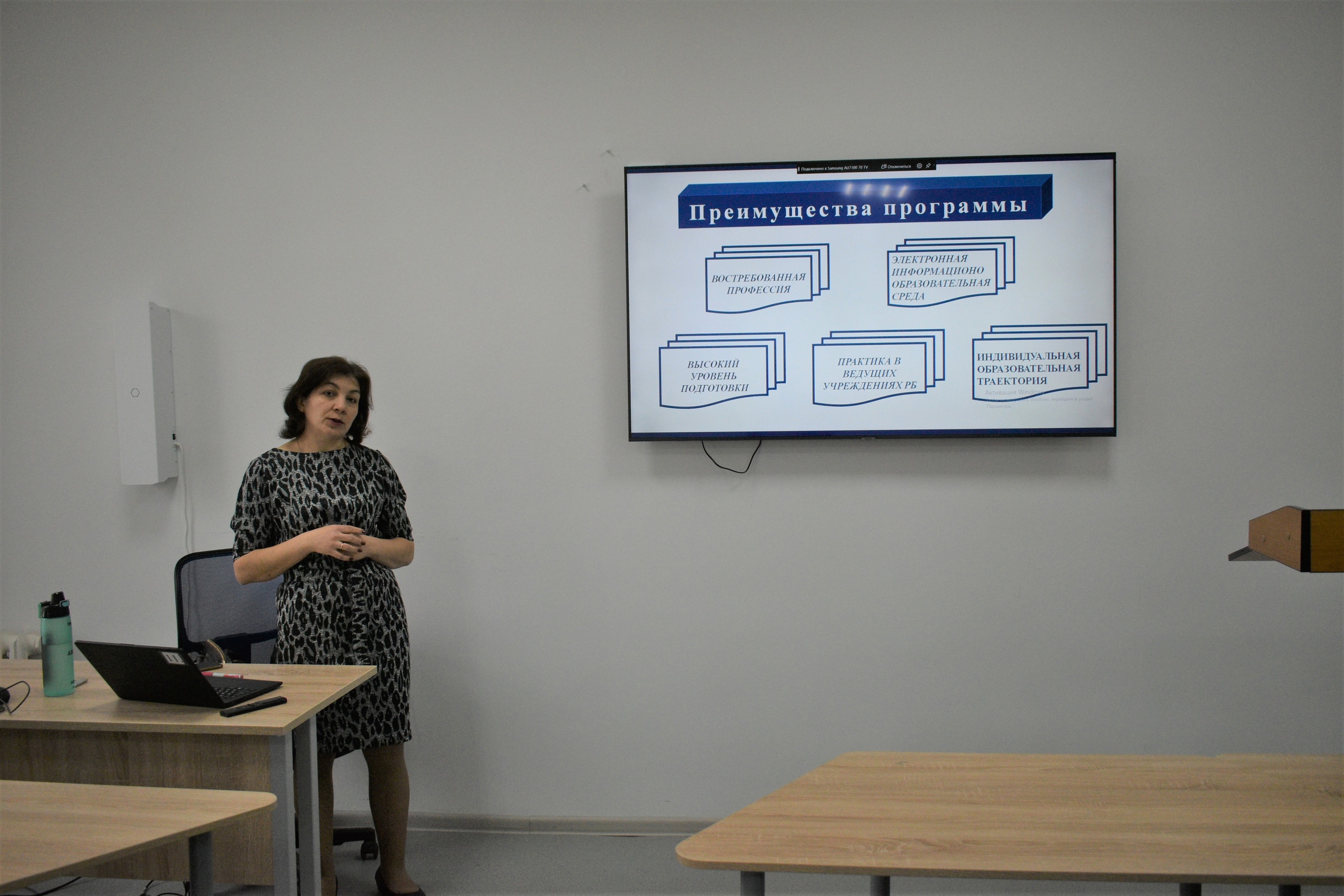 С приветственным словом выступила директор института исторического, правового и социально-гуманитарного образования Оксана Алексеевна Шамигулова. Она объяснила гостям важность выбора спектра профессий из сферы «Человек-Человек». Главная задача таких профессий – уметь взаимодействовать с людьми. Любая профессия, которая сюда относится, предполагает двойную подготовку: во-первых, быть квалифицированным специалистом в области производства/техники/науки/искусства, а во-вторых, устанавливать и поддерживать контакты с совершенно разными людьми, разбираться в них и особенностях их характера, поведения.
