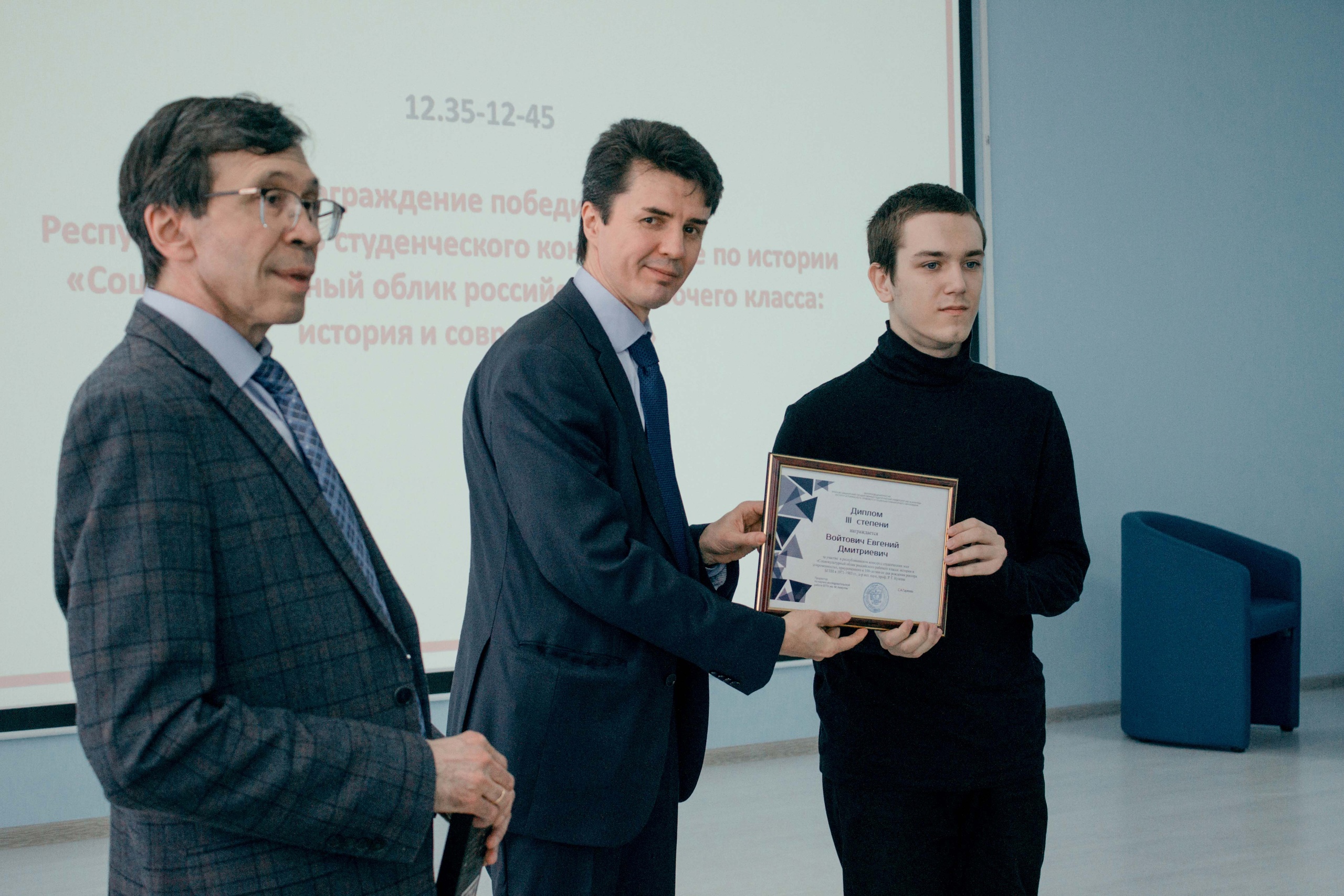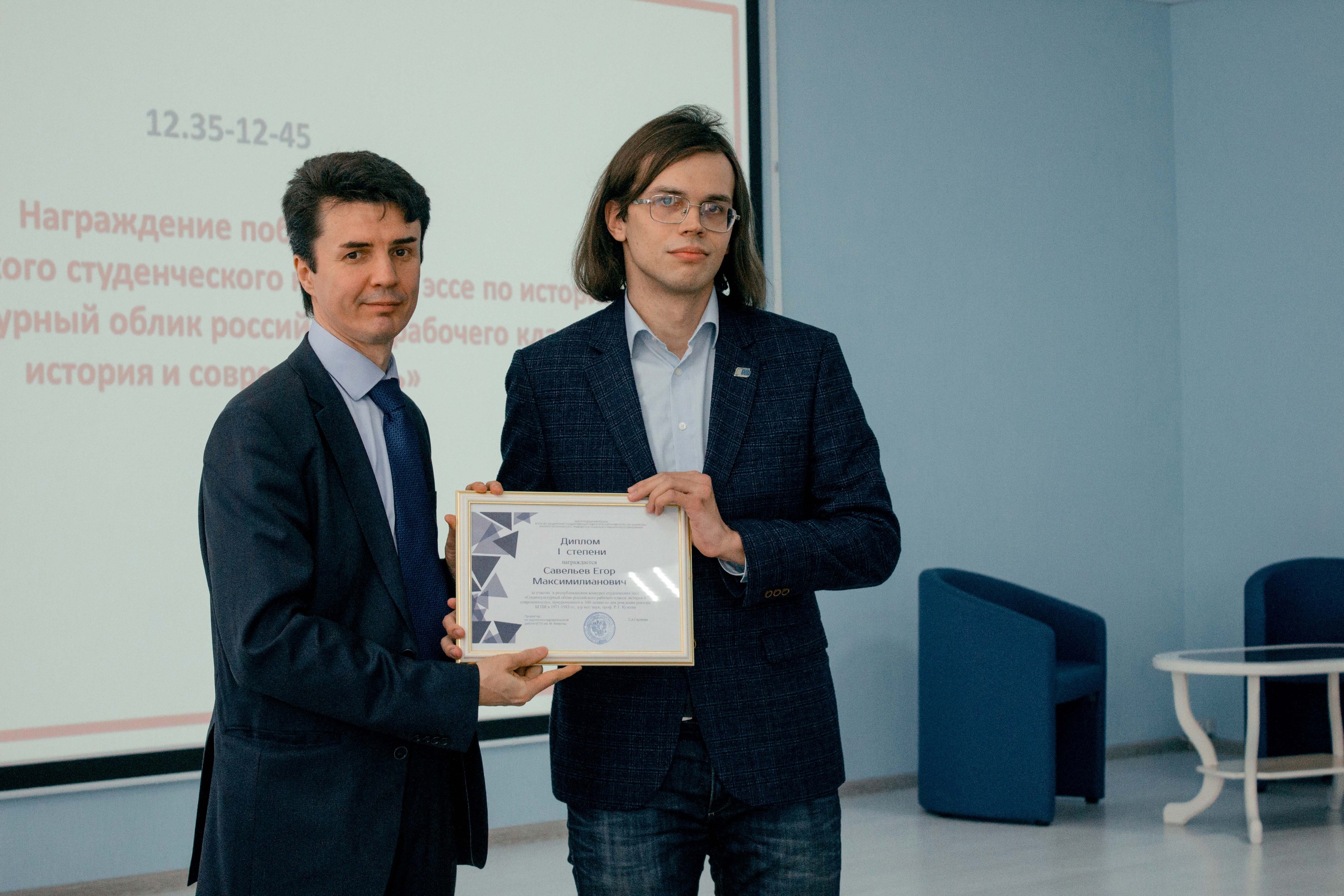 Итоги конкурса подведены 23 марта в ходе работы Всероссийского круглого стола «Личность в зеркале эпохи: научное и педагогическое наследие Рустема Гумеровича Кузеева». Победители конкурса награждены дипломами I, II и III степени и специальными призами. По итогам конкурса магистрант 1 курса МПИОАВО БГПУ им. М.Акмуллы Егор Савельев удостоен диплома I степени, бакалавр 3 курса ПОИС_ОБЩ-31-20 БГПУ им. М.Акмуллы Анна Литвинович диплома II степени, бакалавр 1 курса Евгений Войтович ПОИС_ОБЩ-11-22 БГПУ им. М.Акмуллы диплома III степени. Поздравляем всех победителей конкурса! Желаем дальнейших творческих успехов! Все участники конкурса могут получить электронные сертификаты в прикрепленном документе: