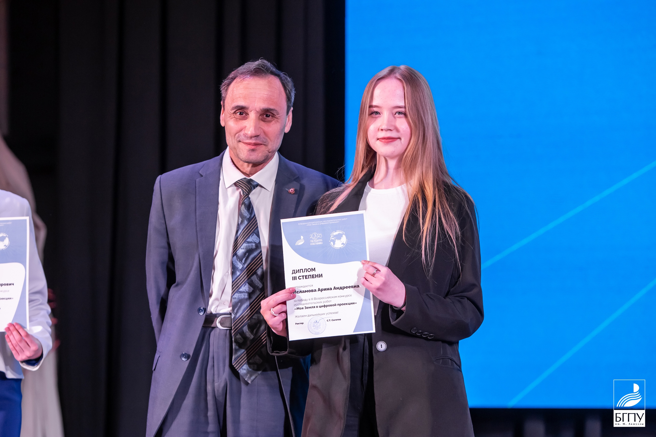 25 апреля 2023 года в концертном зале Акмуллинского университета состоялась торжественная церемония награждения победителей Всероссийского конкурса научных работ «Взгляд молодежи на меняющийся мир» и Всероссийского конкурса исследовательских работ «Моя земля в цифровой проекции» с международным участием. В этом году мероприятия прошли в рамках празднования Года педагога и наставника.