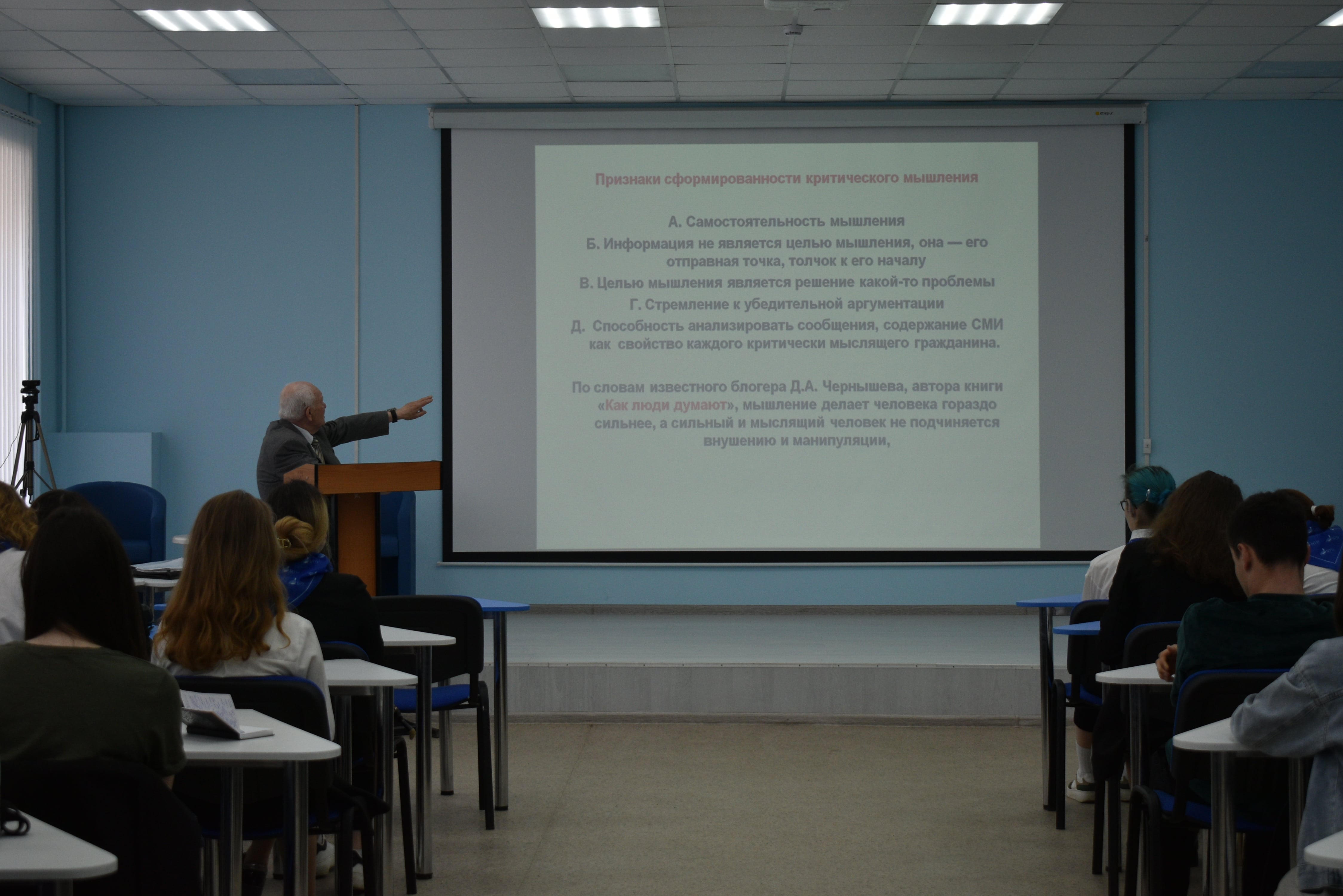 - к.п.н., доцент Салават Мусифуллин на мастер-классе «Критическое мышление: как сформировать критический взгляд» ознакомил студентов с глобальными тенденциями в технологиях будущего, которые отражаются в современном образовании.