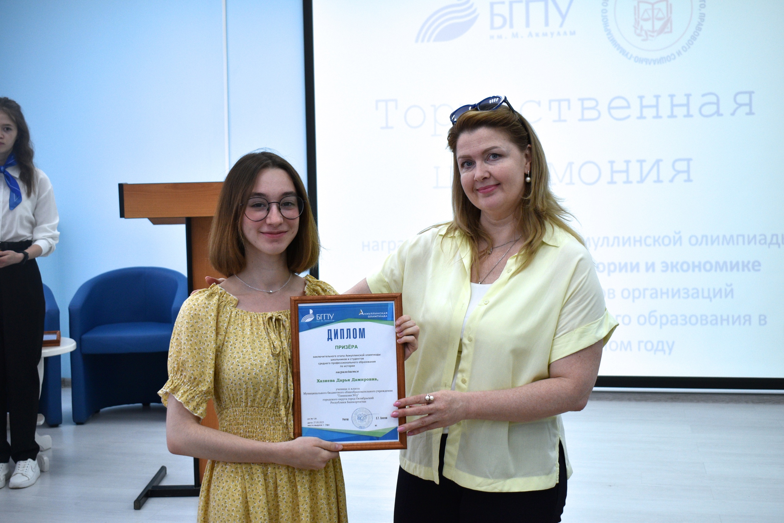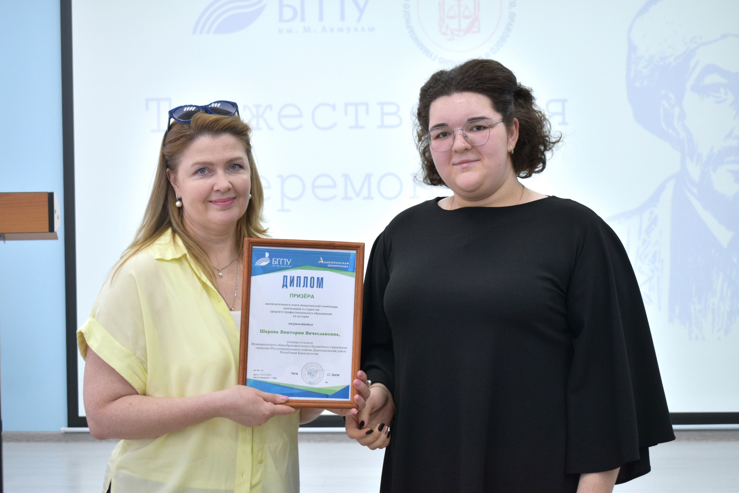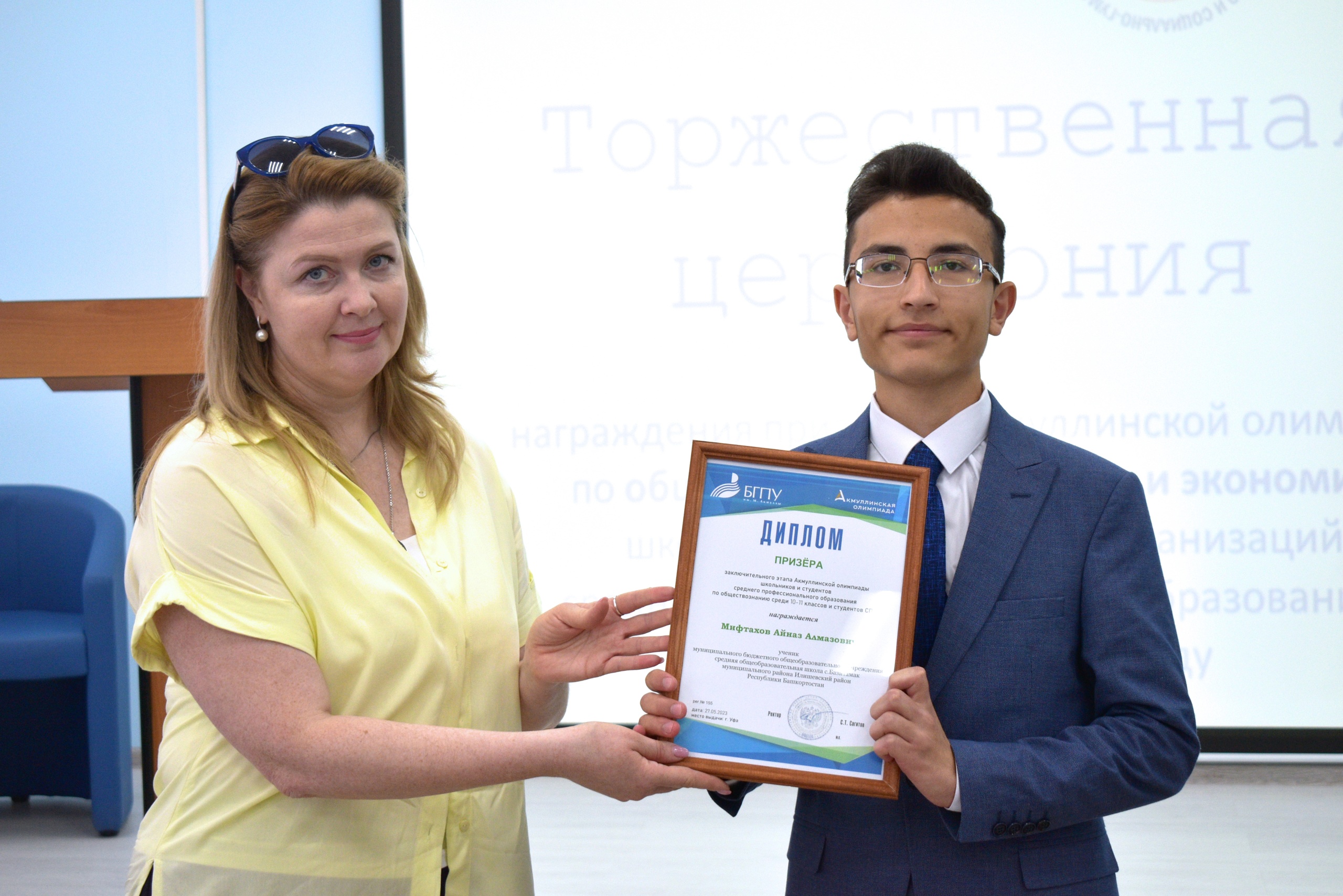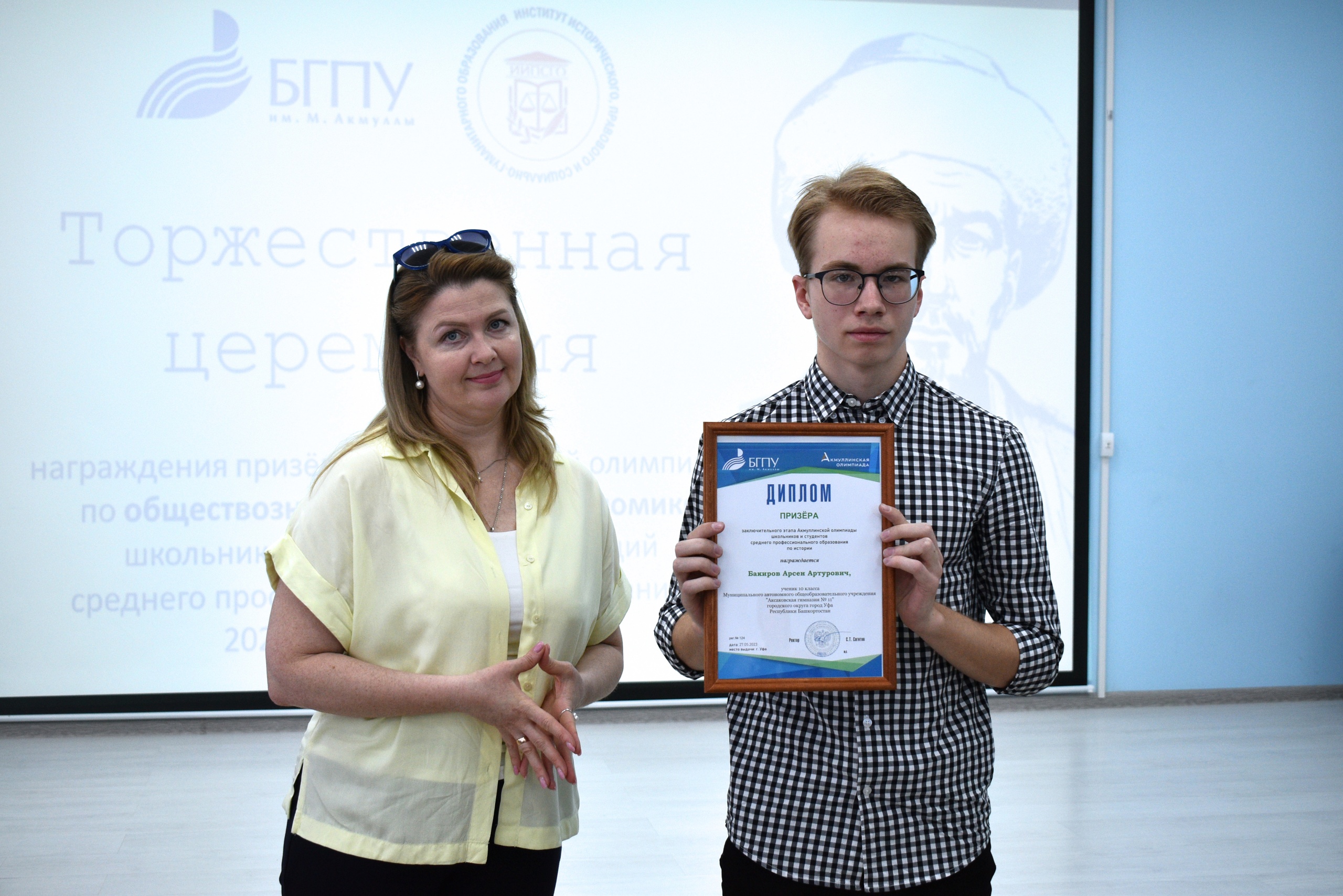 27 мая 2023 года на площадке Института исторического, правового и социально-гуманитарного образования БГПУ им. М. Акмуллы состоялось торжественное награждение призеров Акмуллинской олимпиады по истории, обществознанию и экономике. Олимпиада школьников 8-11 классов и студентов СПО России проводилась в десятый раз. Всего призерами стали 32 человека, в том числе учащиеся психолого-педагогических классов БГПУ им.М.Акмуллы. С приветственным словом к участникам мероприятия обратилась директор ИИПСГО Оксана Шамигулова, отметившая актуальность гуманитарного образования в настоящее время. В рамках мероприятия ребята познакомились с направлениями деятельности и подготовки Института. При посещении социально-гуманитарного кластера технопарка обучающиеся смогли в неформальной обстановке задать вопросы преподавателям и студентам Института, а также погрузиться в виртуальную программу Полтавской битвы, эпохи Екатерины Великой.