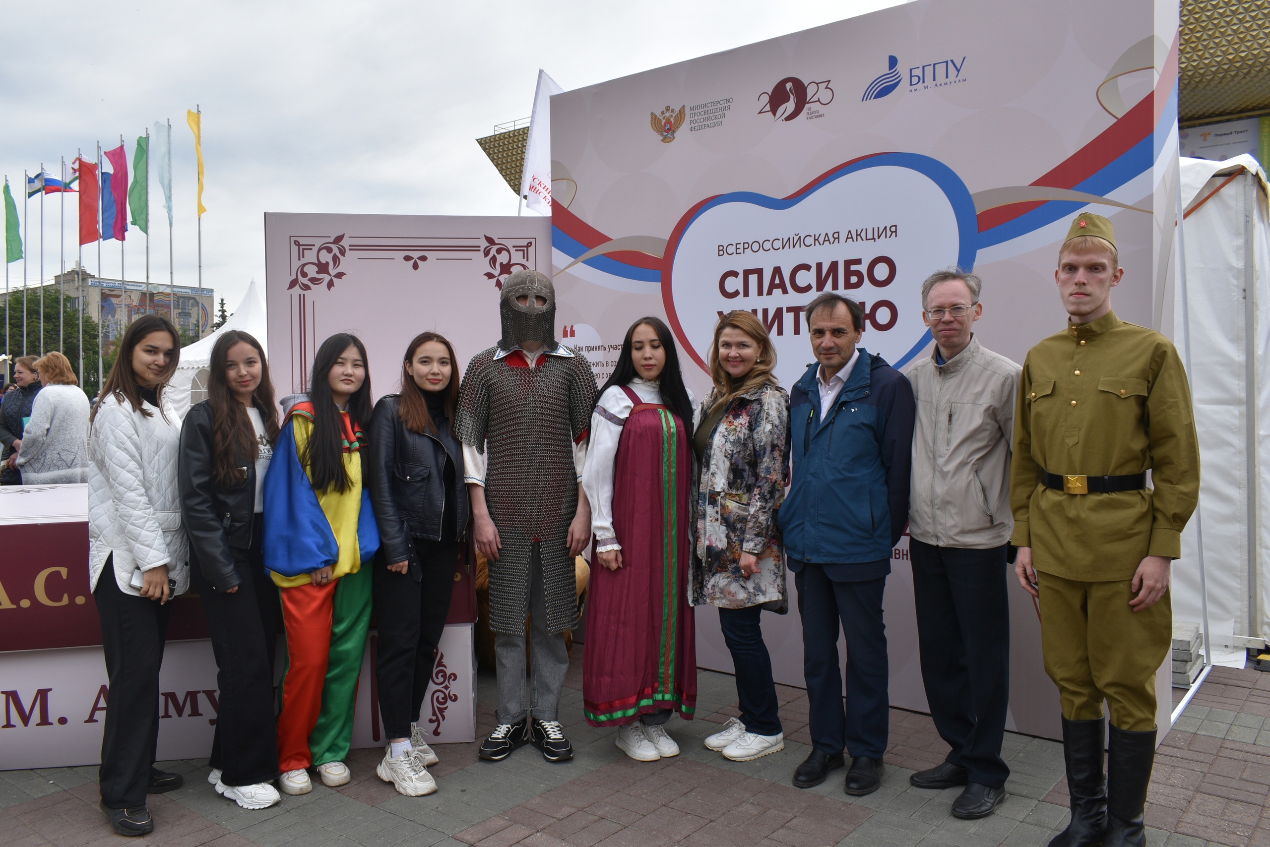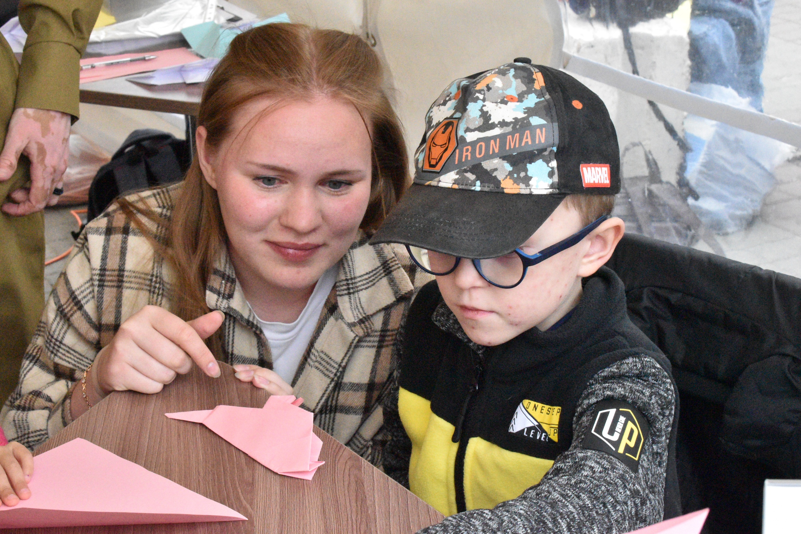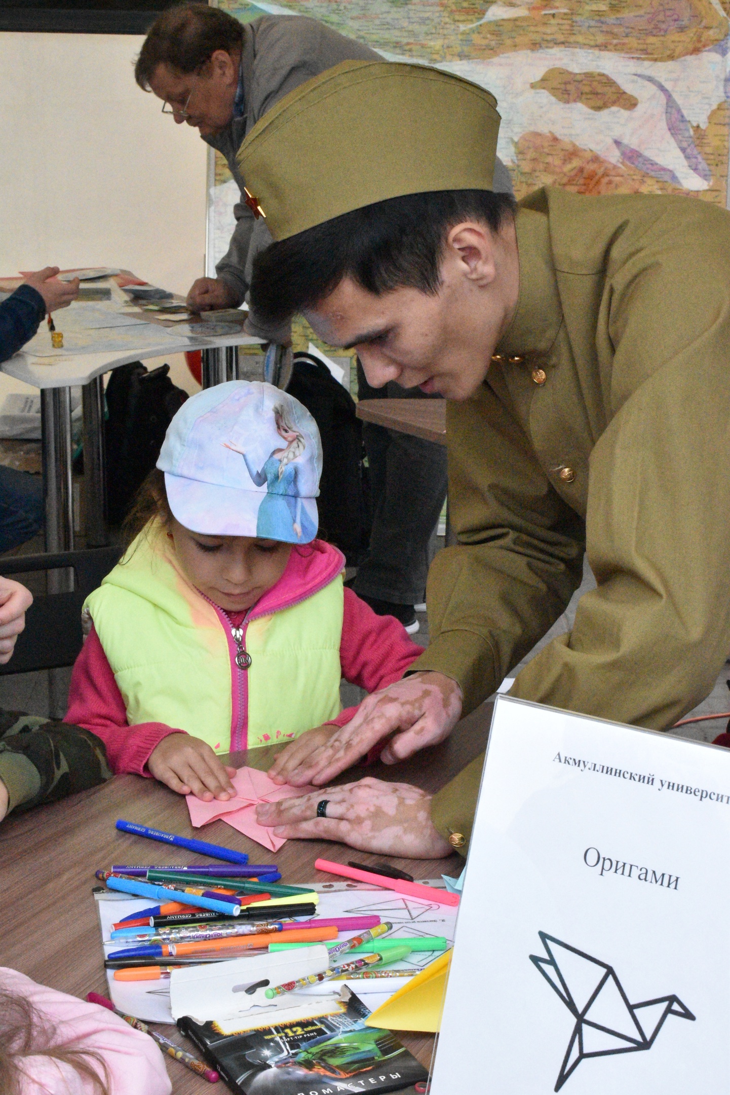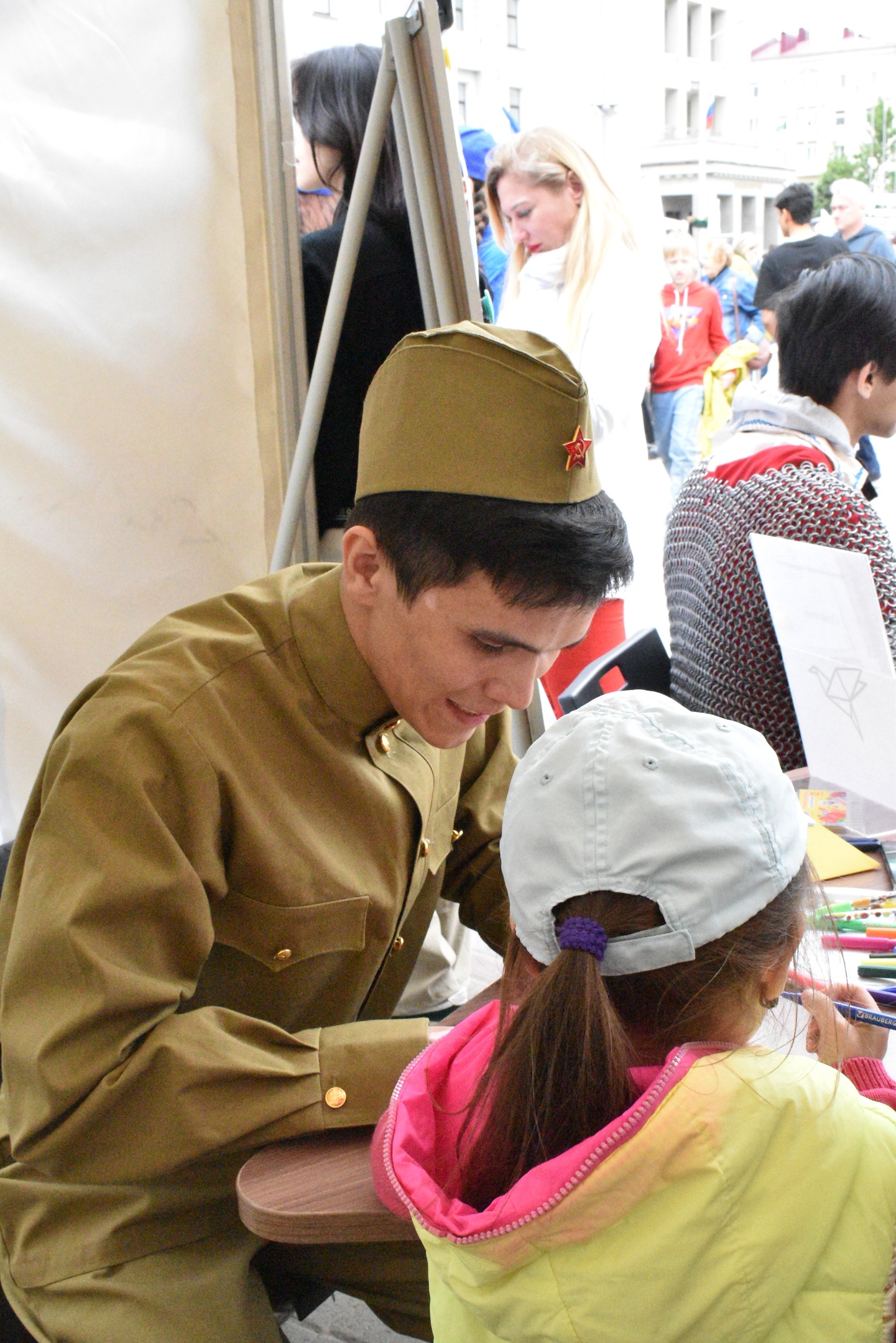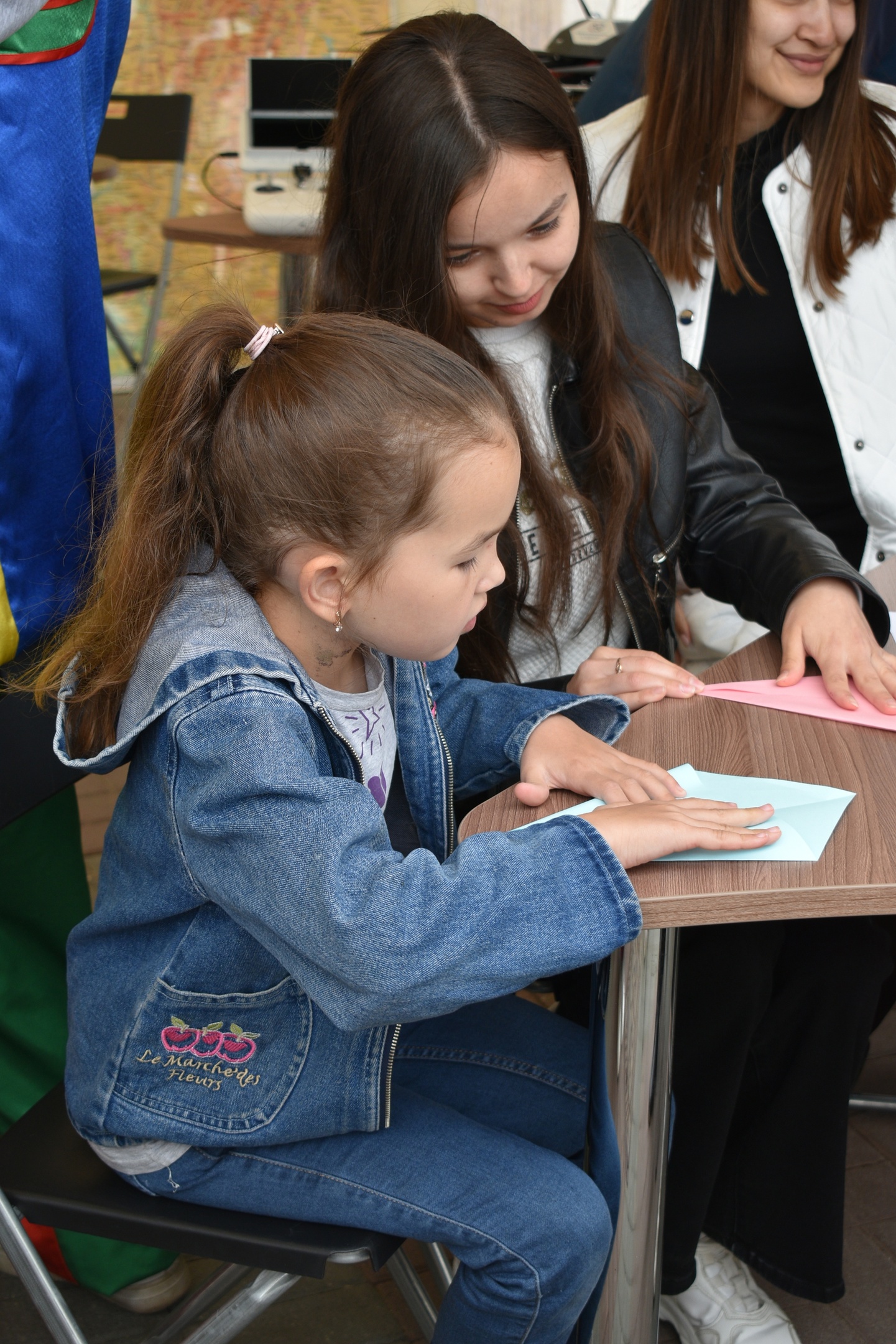 Институт исторического, правового и социально-гуманитарного образования подготовили для юных гостей интересную программу: проводили мастер-класс по изготовлению голубя мира, раскрашивали графические изображения на исторические темы, разгадывали кроссворды. Особенно запоминающимися для детей стали герои, воплощённые студентами: военные представители, скоморох, воин в кольчуге.