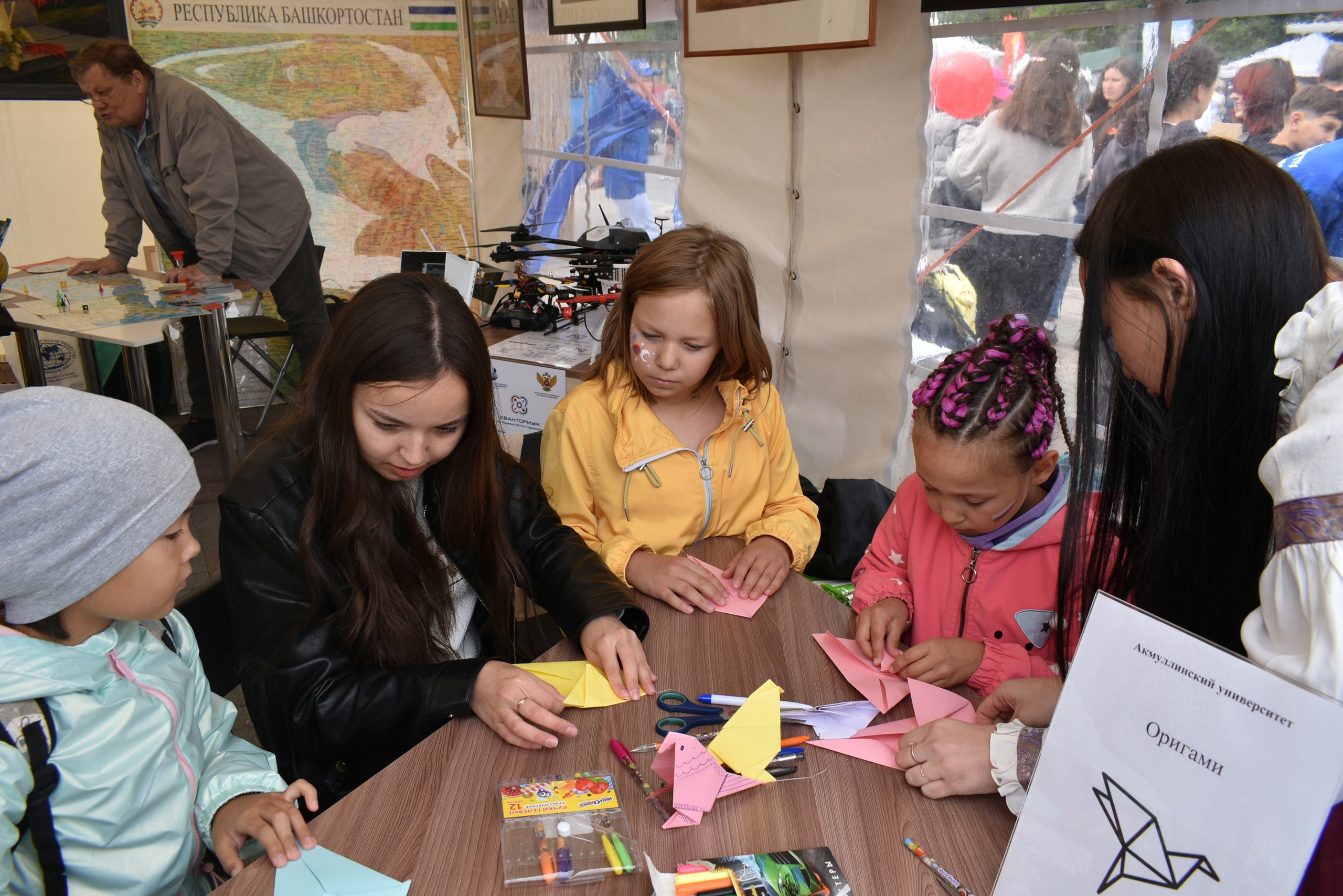 Несмотря на довольно прохладную погоду, уфимцы с семьями и друзьями пришли на праздник. Для них в центральной части города развернулась площадка «Уфа — студенческая». В семи тематических шатрах ведущие высшие учебные заведения Уфы представили презентационные экспозиции.
