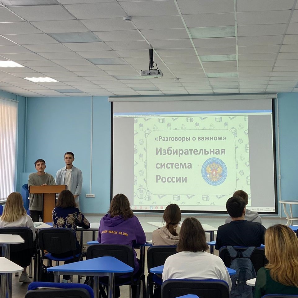 25 сентября 2023 года в Институте исторического, правового и социально-гуманитарного образования в рамках реализации проекта наставничества «Разговоры о важном» студентами выпускных курсов был проведен ряд занятий по теме «Избирательная система России (30 лет ЦИК)». Целью занятия стало формирование гражданской позиции, уважения к конституционным правам граждан России, ответственного отношения к избирательному праву; осознания студентами необходимости приобретения опыта гражданской социально значимой деятельности.