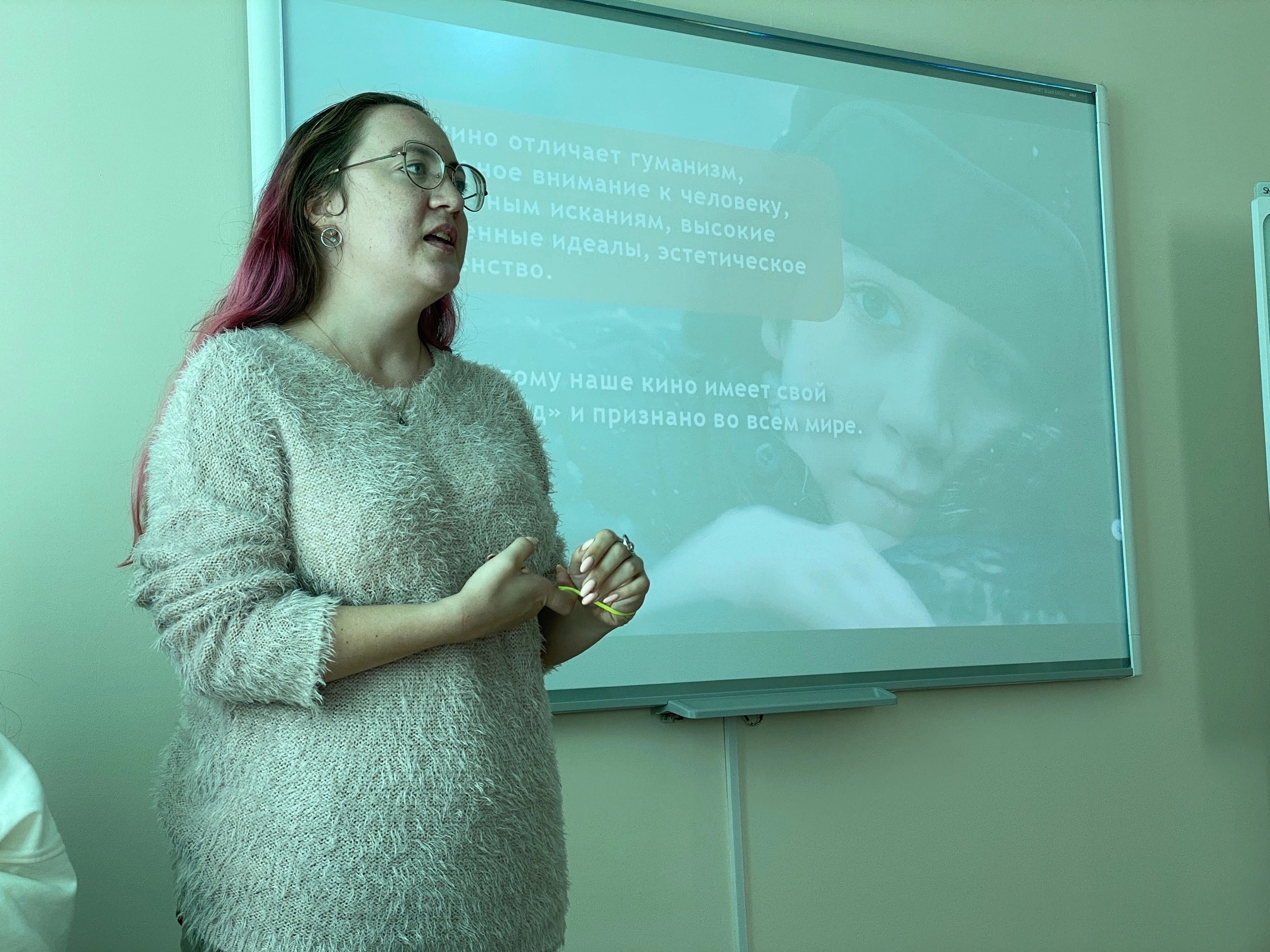В рамках беседы студенты рассказали об отечественном кинематографе, в котором отражены ключевые исторические события, показаны герои войны и труда, деятели науки, искусства и общества.