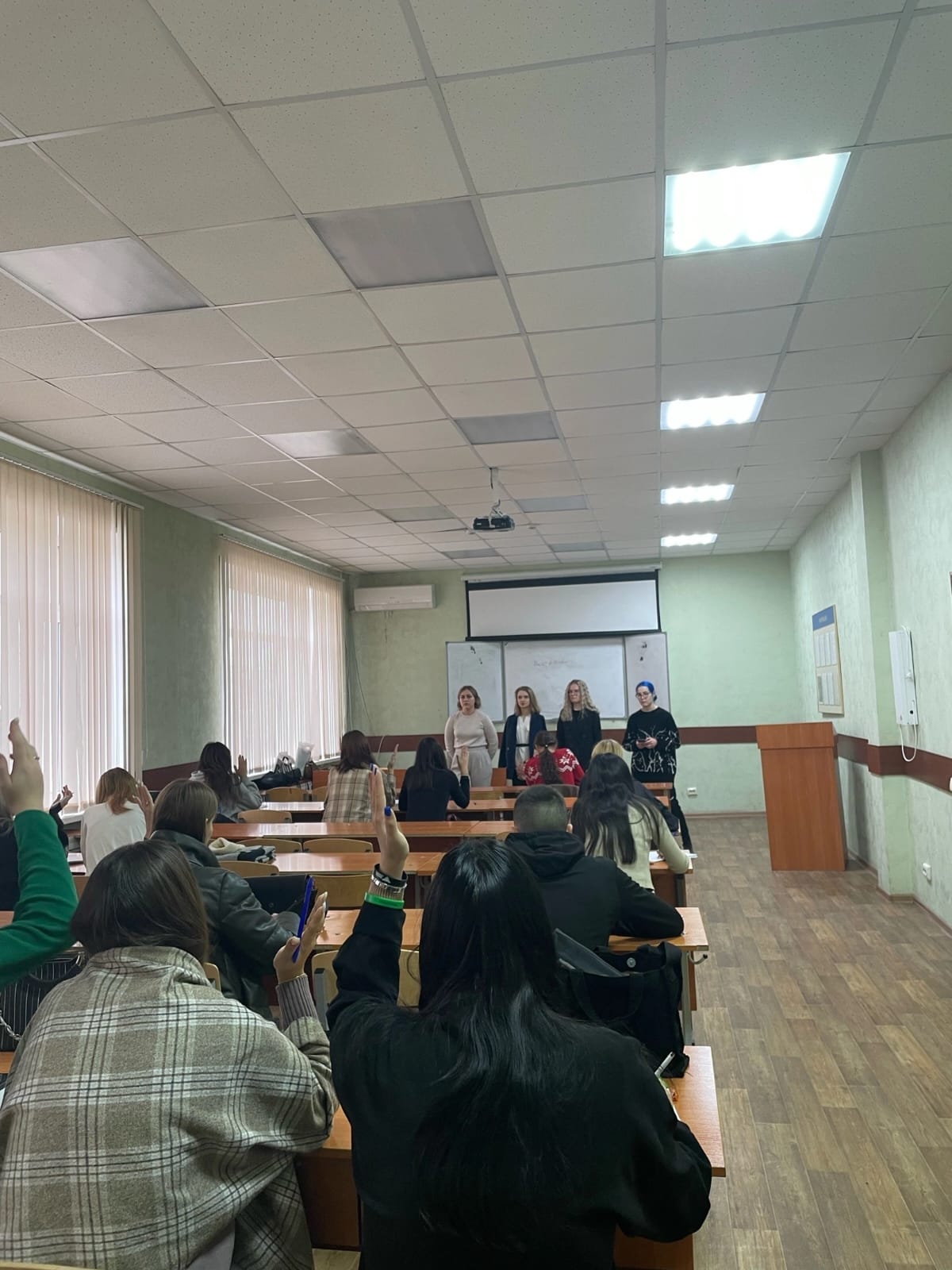 24 октября 2023 г. студенты группы ПРОПД-31-21 (Мадьямова Т., Кудряшова Е., Сутягина А., Курчеева О., Тарасова А.) провели профориентационную встречу с обучающимися Башкирского кооперативного техникума (группы СИС-1121, ПСО -1121А, ПСО -1121Б). В ходе встречи обучающиеся узнали о том, какие институты и факультеты есть в Акмуллинском университете, какие правила приема для абитуриентов в 2024 г. Обучающиеся техникума были проконсультированы относительно форм обучения, условий поступления, особенностей обучения. После занятия они подходили с личными вопросами, интересовались мнением и ощущениями от обучения в данном учебном заведении. Встреча прошла в максимально легкой и дружеской форме.