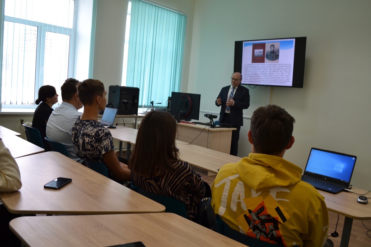 27 октября 2023 г. в Институте исторического, правового и социально-гуманитарного образования доценты кафедры отечественной и всеобщей истории Ильдар Баишев, Алина Тимиргазиева и студент 5 курса профиля «Обществознание и история» Глеб Луц рассказали обучающимся МОБУ СОШ с. Ефремкино Кармаскалинского района о профессии историка. Школьники узнали о широком спектре знаний и навыков, необходимых специалисту в этой области, перспективных возможностях для работы историка в качестве преподавателя, ученого, архивиста, музейного работника, археолога и др. Школьники узнали о связи истории с другими науками – политологией, социологией, культурологией, журналистикой. В специально оборудованной аудитории, ребята смогли окунуться в атмосферу эпохи, приняв участие в интерактивной игре «Крузенштерн. Кругосветка «Надежды»» с использованием VR-очков. Использование технологии виртуальной реальности в изучении истории вызвало большой интерес. В ходе проведения профессиональной пробы, школьники, разделившись на команды, подготовили свои исследовательские проекты, разработали фрагменты внеурочного мероприятия по обозначенной теме с использованием мультимедийной техники.