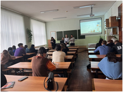26 октября студенты 3 курса направления 44.03.04 Профессионально обучение (по отраслям), направленность (профиль) «Экономика и управление» (Ерастова Дарья, Гаффарова Алсу, Исламова Регина, Тулякова (Колябина) Евгения) провели профориентационное мероприятие в Уфимском государственном колледже технологии и дизайна (УГКТиД) в группах «Экономика и бухгалтерских учет» (3 курс) и «Банковское дело» (2 курс). Мероприятие было направлено на осуществление помощи студентам колледжа в определении с поступлением в Акмуллинский университет. Студенты рассказали о направлениях подготовки Башкирского государственного педагогического университета имени М.Акмуллы, о вступительных испытаниях, а также о возможностях поступления на очное и заочное отделения. Отдельно студенты остановились на особенностях обучения в Институте исторического, правового и социально-гуманитарного образования: рассказали о структуре студенческого совета, о научной и культурно-творческой деятельности, о волонтерской деятельности и различных студенческих объединениях. Особый интерес вызвало направление подготовки «Экономика и управление». Участники мероприятия имели возможность задать интересующие их вопросы и получать советы по дальнейшему выбору. Также были представлены информационные материалы и ресурсы для дальнейшего изучения выбранных направлений.