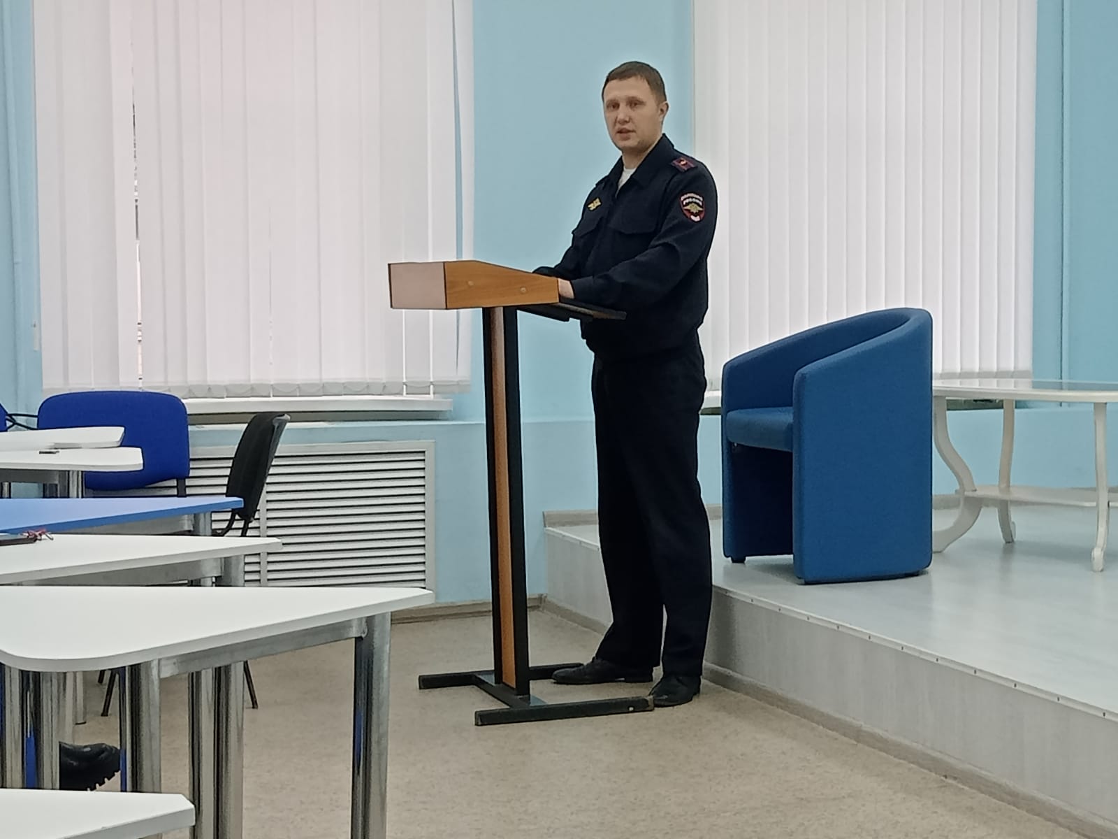 Для сотрудников и студентов с актуальной информацией о количестве и видах совершенных преступлений с участие жителей г. Уфа выступил начальник ОО майор полиции Носов И.А.