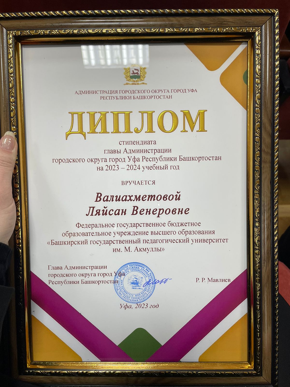 Стипендиатом главы Администрации ГО г.Уфа РБ стала студентка Акмуллинского университета