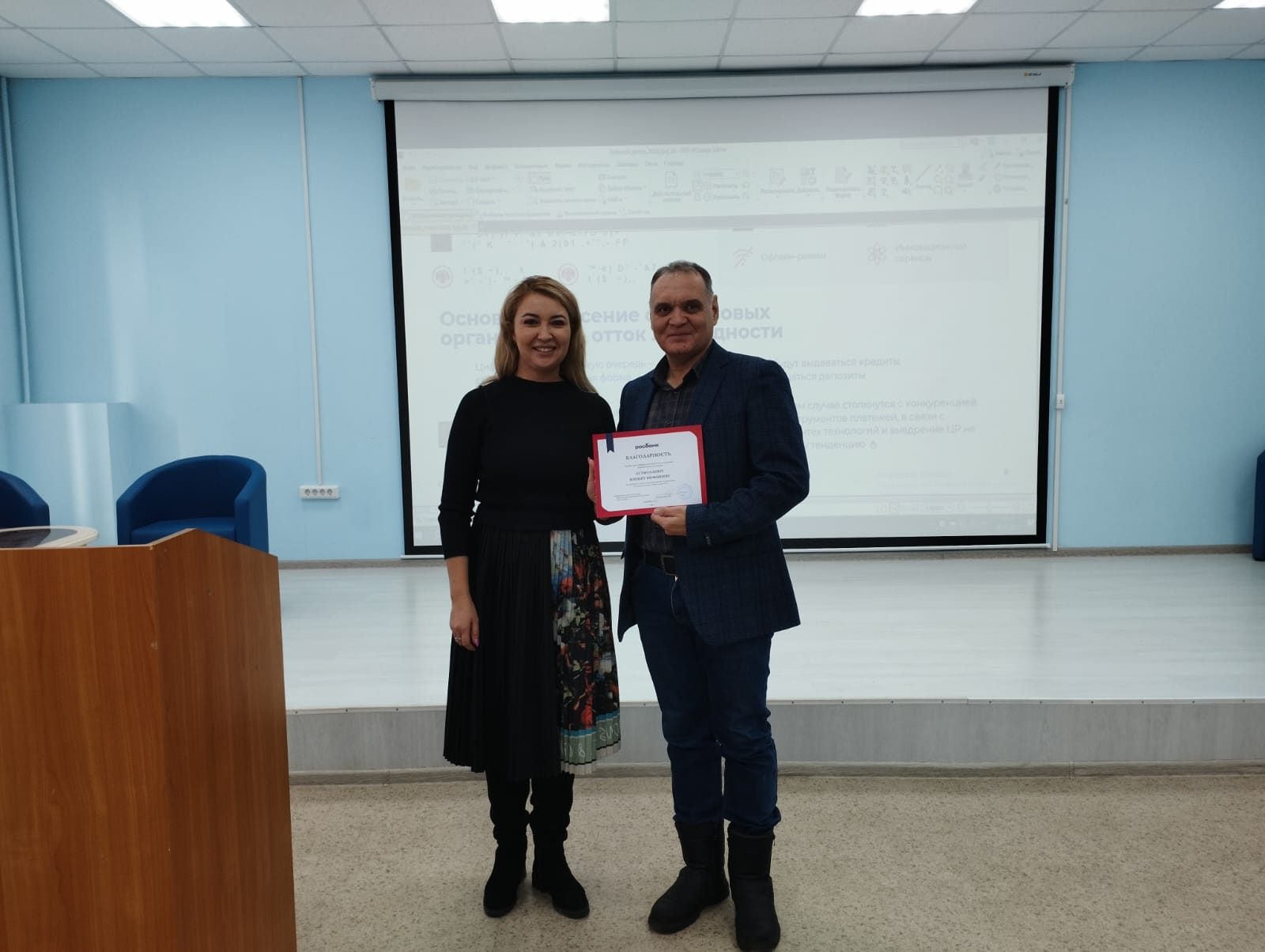 В целом мероприятие прошло в хорошей дружеской обстановке. От имени ПАО Росбанк управляющий допофиса Губайдуллина Л.В. поблагодарила студентов ИИПСГО за активность в работе семинара и выразила благодарность заместителю директора по воспитательной работе и молодежной политике ИИПСГО Горскову Д.А. Также благодарности были вручены профессору Лутфуллину Ю.Р. и старшему преподавателю Нефедовой В.Н.