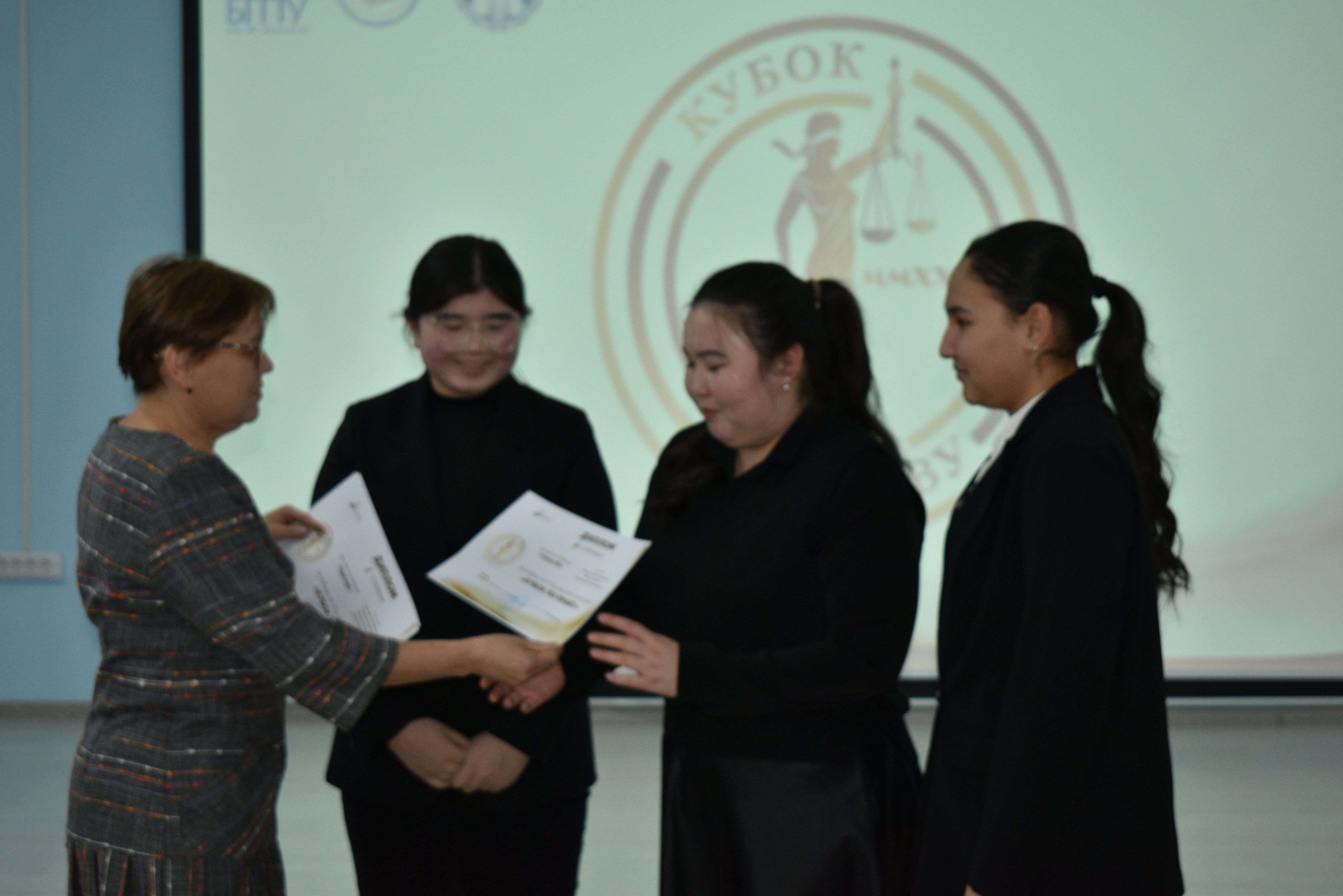 1 место заняла команда Института исторического, правового и социально-гуманитарного образования «Фемида» (Екатерина Герасимова,  Виктория Султанова, Эльвина Хайруллина,  Раушан Сыздыкова). Им достался переходящий трофей – Кубок по праву.