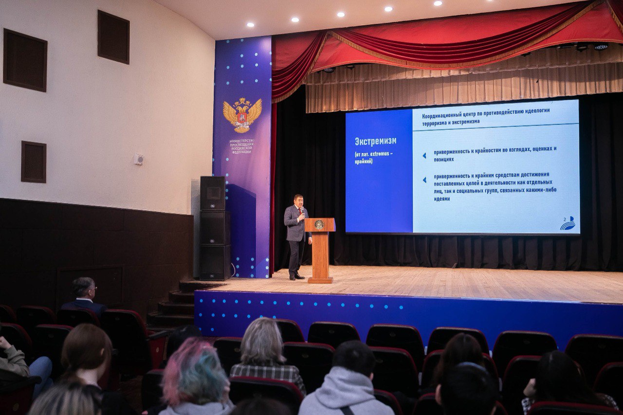 Встреча со студентами была направлена на профилактику и противодействие проявлениям экстремизма и терроризма в молодежной среде.