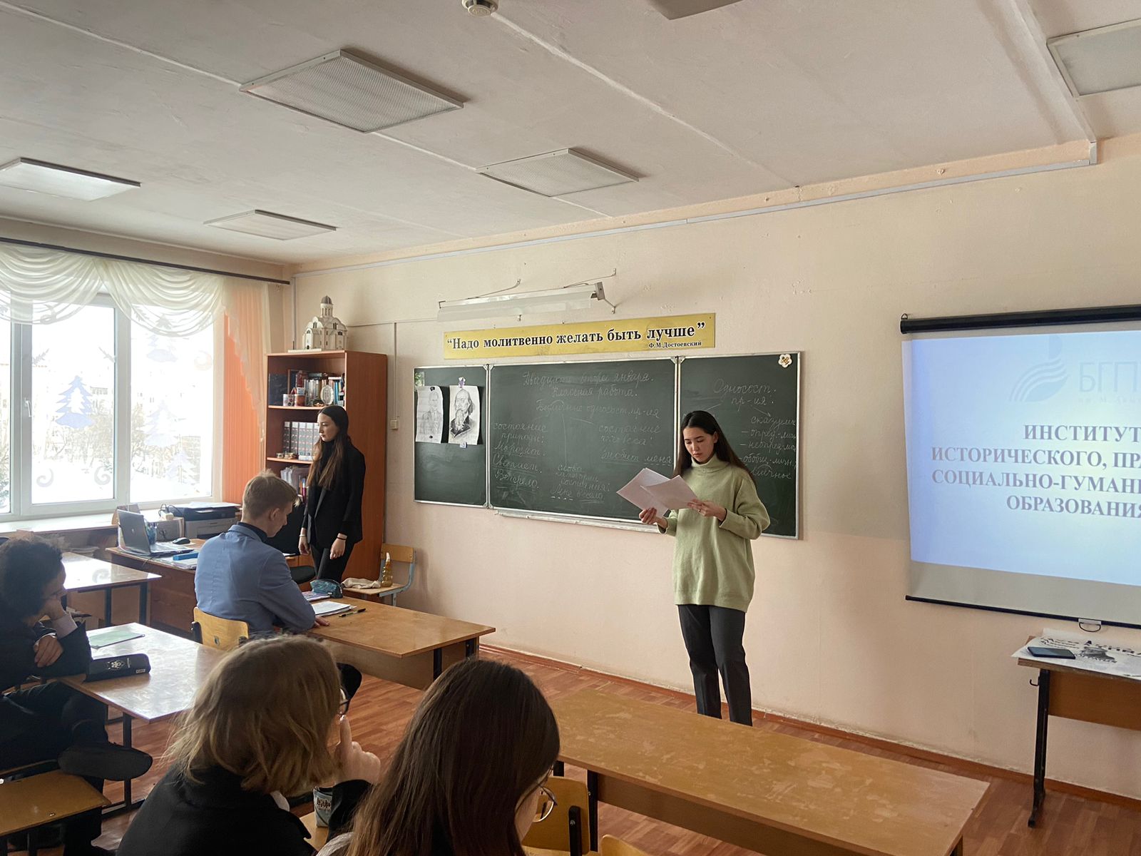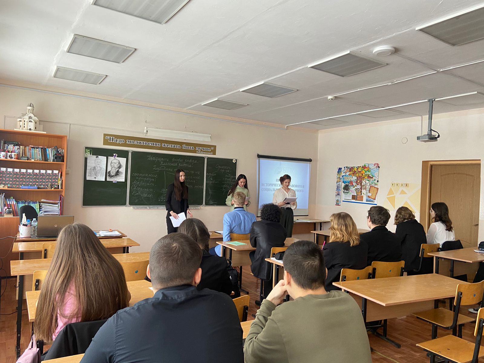 В МАОУ "Школа №113 имени героя Советского Союза Рыбалко Ивана Игнатьевича" в рамках прохождения педагогической практики было проведено профориентационное мероприятие со школьниками. Студенты 4 курса очного отделения профиль "Мировая художественная культура и экономика" Мурзина Дарья, Рыскулова Илюза и Туйгунова Эммилия рассказали о направлениях Института исторического, правового и социально-гуманитарного образования. Обучающиеся школы были проконсультированы относительно форм обучения, условий поступления, особенностей обучения, профессорско-преподавательского состава.