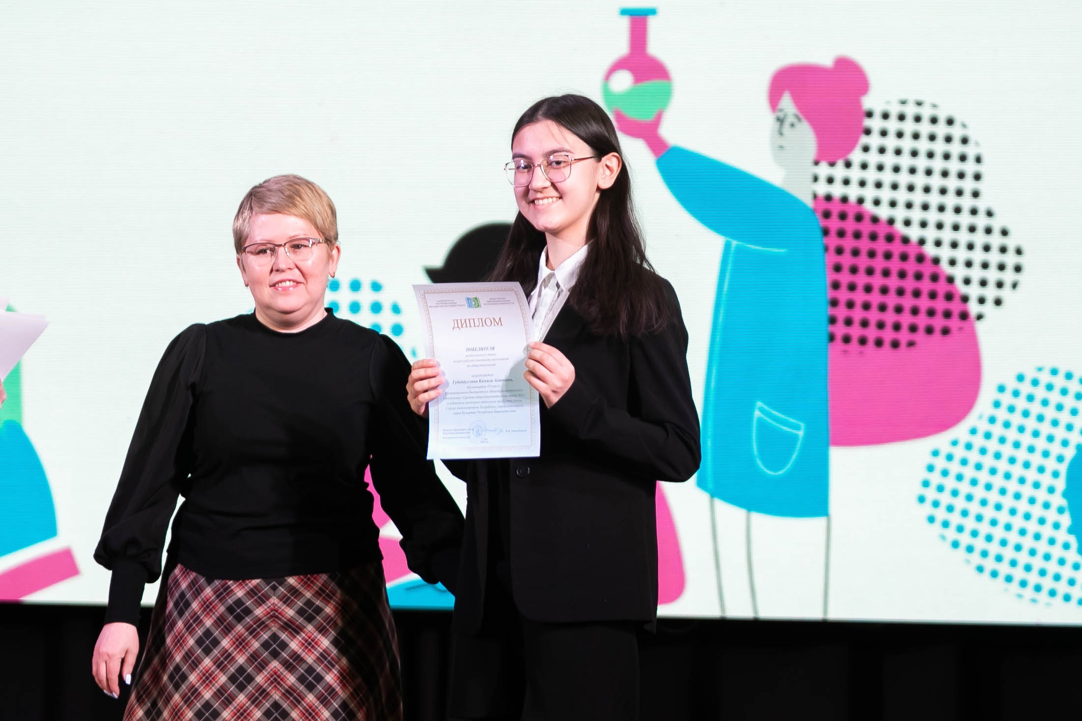 Призеров и победителей олимпиад поздравили председатель жюри по предмету мировая художественная культура, профессор, заведующий кафедрой гуманитарного образования Института развития образования РБ Наиля Искужина; председатель жюри по истории, заведующий кафедрой обществознания, права и социального управления Акмуллинского университета Салават Мусифуллин; председатель жюри по обществознанию, доцент кафедры гражданского права Института права УУНиТ Олеся Гимадрисламова.
