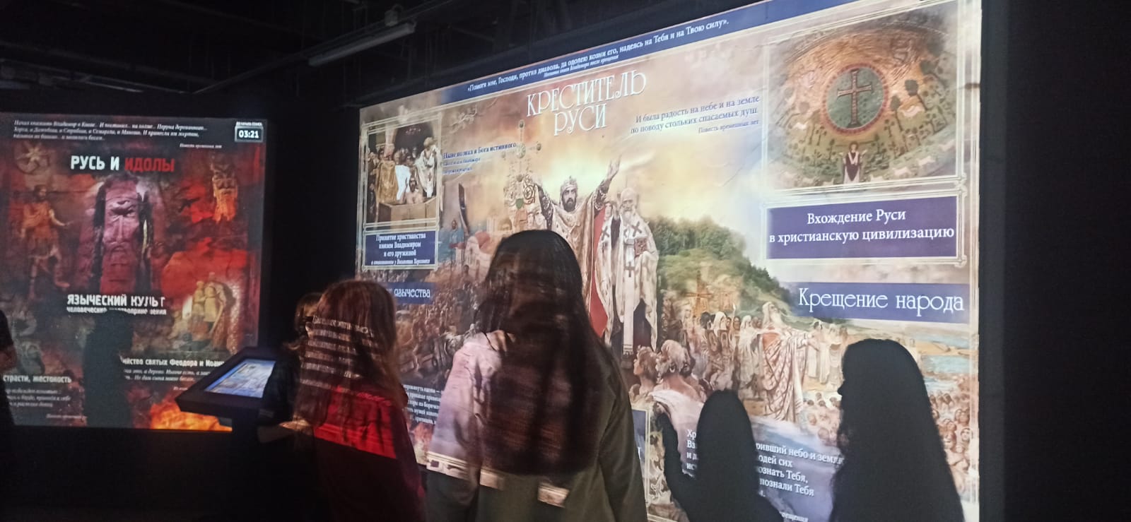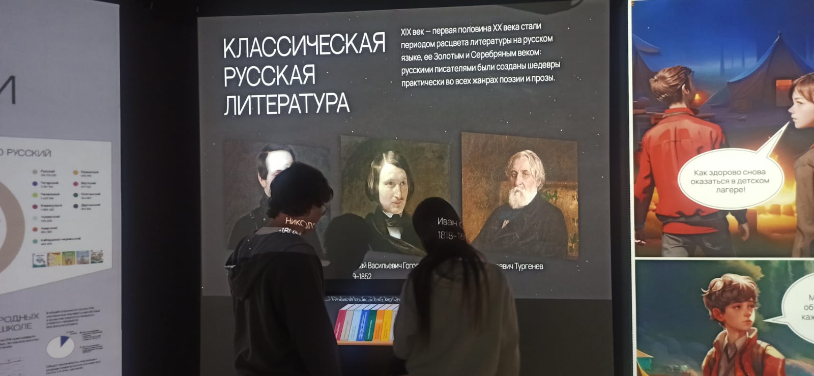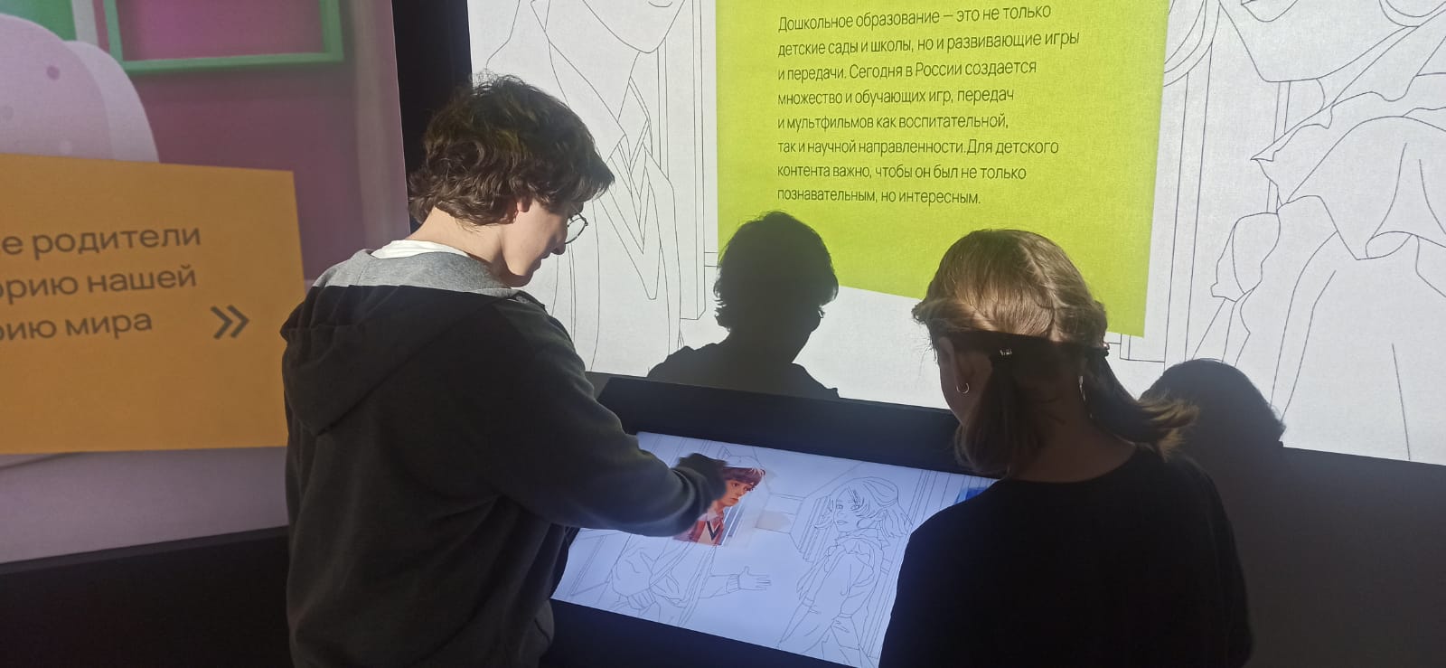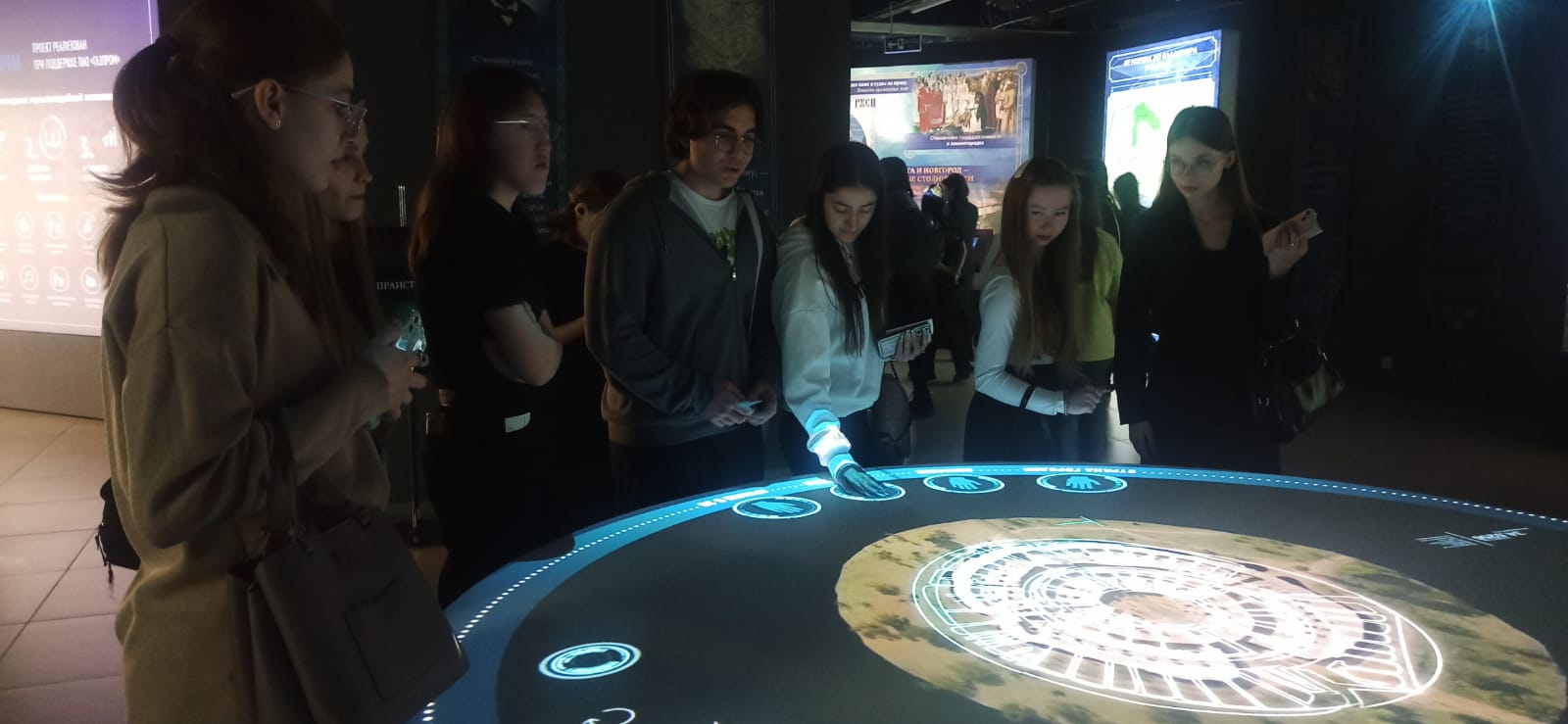 Отдельное внимание студентов было посвящено мультимедийной экспозиции «Просвещение. Большие перемены». Данная экспозиция представляет собой наглядную иллюстрацию эволюции системы образования в стране от периода Советского Союза до современной России.