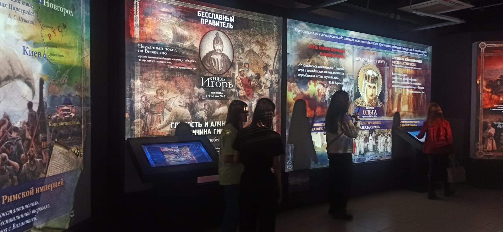 Экскурсия по одной из самых больших экспозиций парка была посвящена истории становления первой русской правящей династии и возникновением государственности и тяжелейшим испытаниям, с которыми столкнулась наша страна на самых ранних этапах своего существования. Студенты при помощи современных интерактивных технологий смогли ознакомиться с историей самобытной Руси, наглядно ознакомились с бытом и жизнью наших предков на протяжении тысячелетней истории.