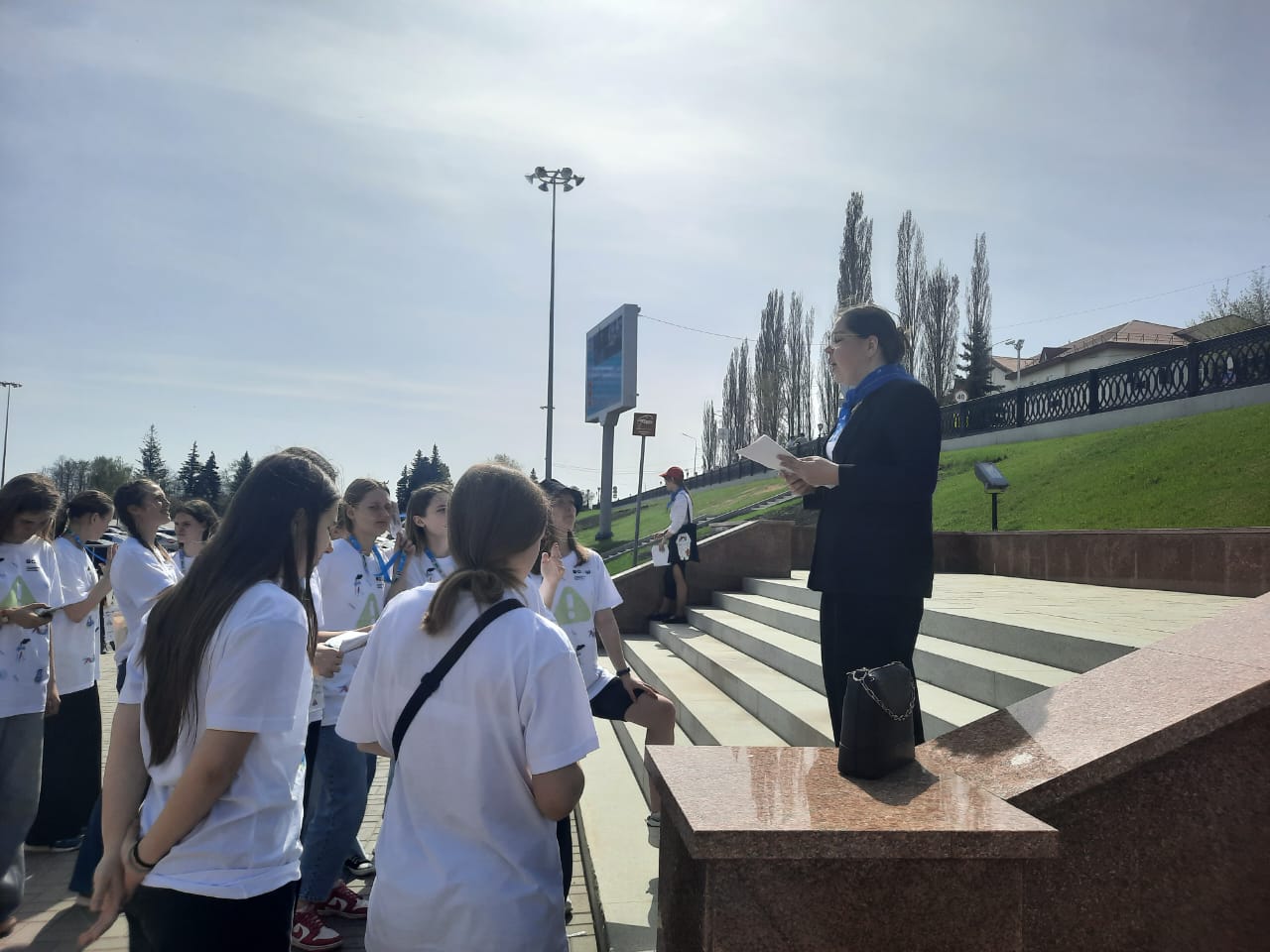 22 апреля прошла первая экскурсия по Уфе в рамках знакомства  участников Всероссийского этапа олимпиады школьников по ОБЖ со столицей  Республики Башкортостан.  Показывают город гостям столицы студенты первого курса Института исторического, правового и социально-гуманитарного образования  по направлению подготовки  педагогическое образование, направленность «История и обществознание». Первый день ознакомительной экскурсии начался  на Советской площади, где детям рассказали об истории памятника Минигали Шаймуратову, про его пребывание военным атташе в Китае, об его участии в боевых детствах как командира знаменитой 112 башкирской кавалерийской дивизии и героической гибели в феврале 1943 года.