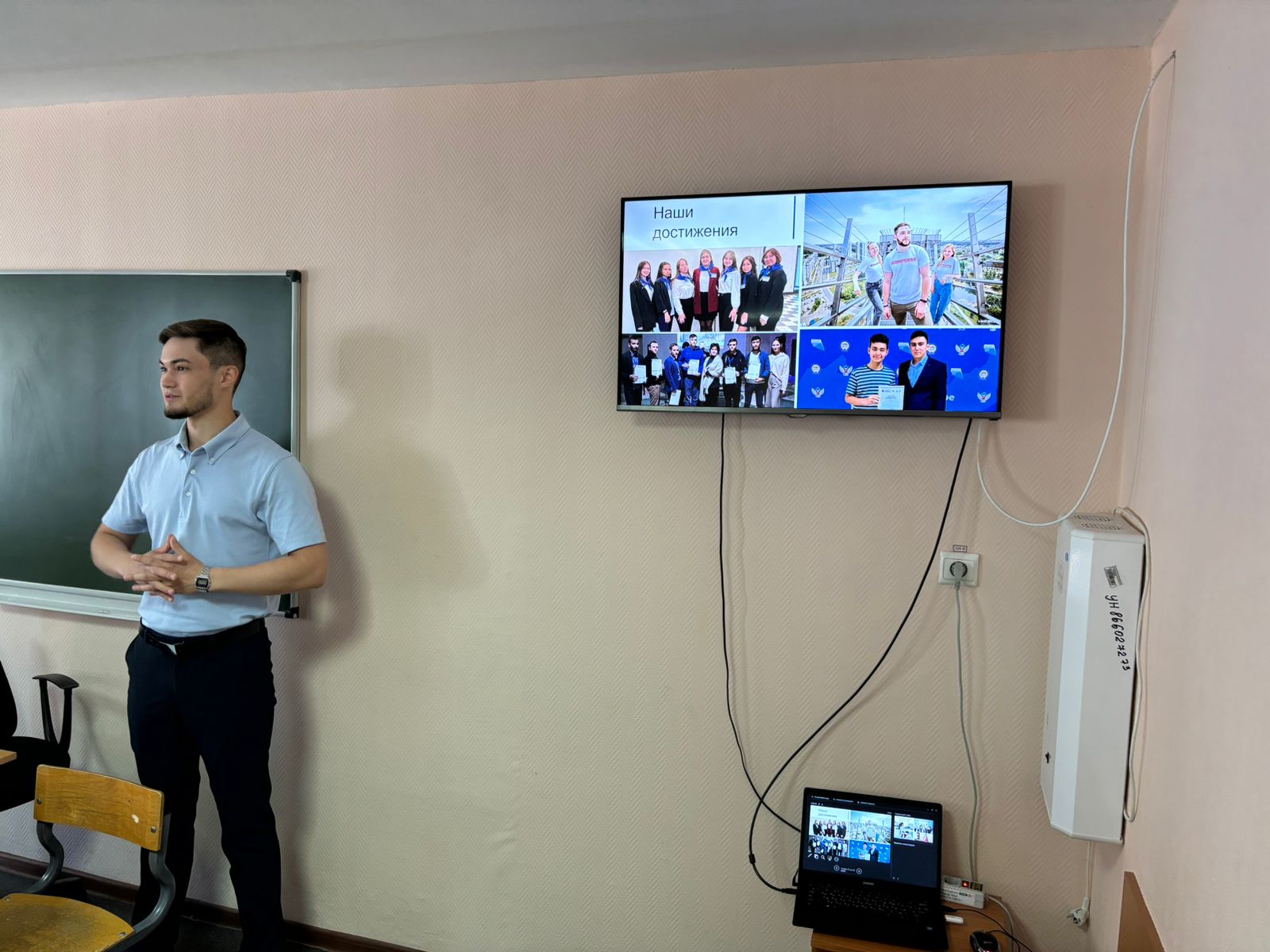 Далее наш студент предоставил профориентационную информацию об Институте исторического, правового и социального-гуманитарного образования. Подробно было рассказано о всех направлениях и профилях обучения в Институте, условиях и правилах поступления, а также активной жизни студентов.