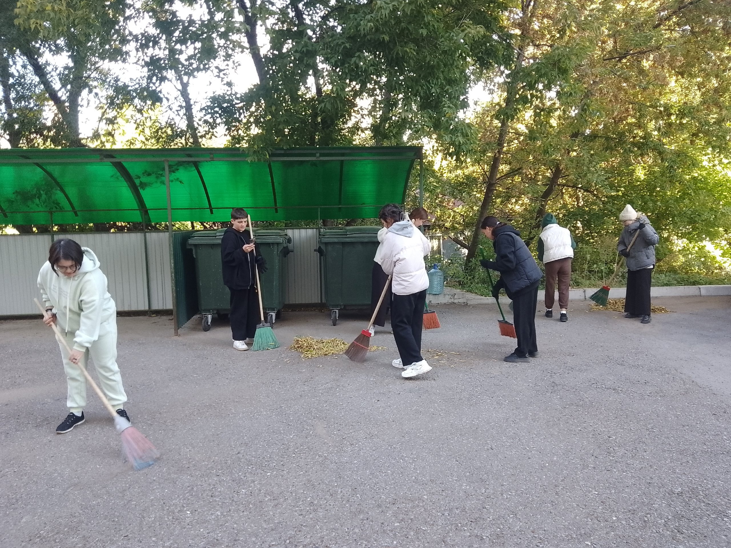 Вся территория была поделена на участки, которые были распределены между группами, благодаря чему ребята оперативно справились с поставленной задачей.