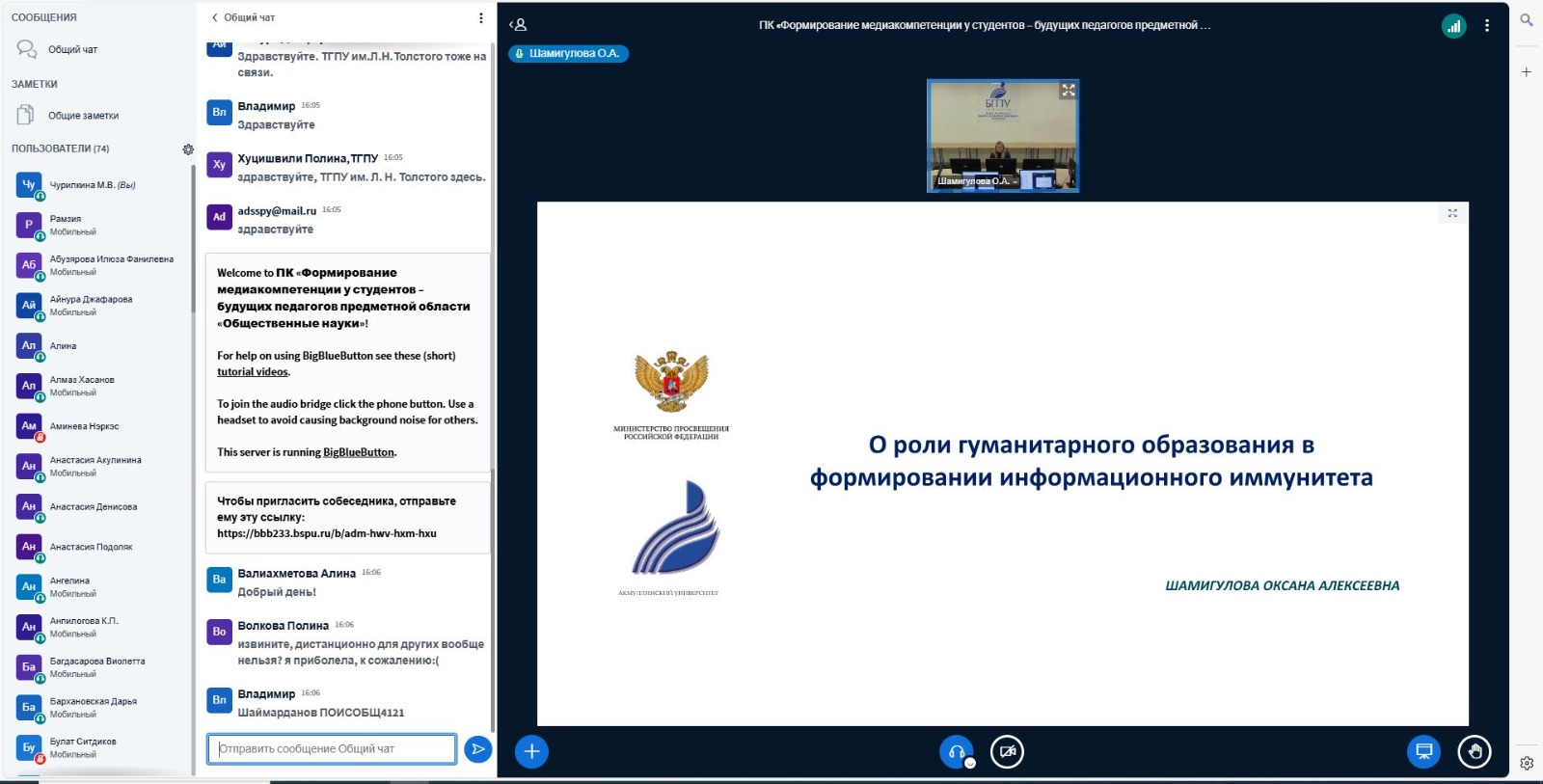 Программа, направленная на развитие профессиональных методических компетенций в области информационной безопасности, медиаграмотности и критического мышления, позволила слушателям освоить широкий спектр знаний и навыков. Участниками курсов стали студенты выпускных курсов и магистратуры Башкирского государственного педагогического университета им. М. Акмуллы, Оренбургского государственного педагогического университета и Тульского государственного педагогического университета им. Л.Н. Толстого.