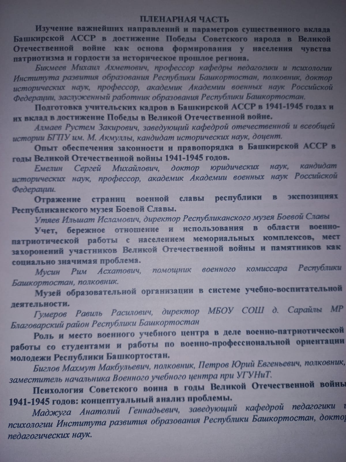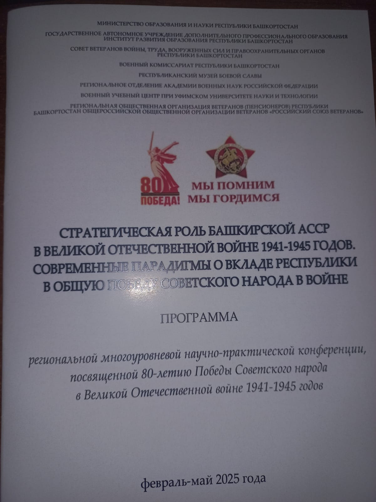 19 февраля в Институте развития образования РБ состоялась региональная многоуровневая научно-практическая конференция «Стратегическая роль Башкирской АССР в Великой Отечественной войне 1941-1945 годов. Современные парадигмы о вкладе республики в общую победу советского народа в войне», посвященная 80-летию Победы Советского народа в Великой Отечественной войне 1941-1945 гг. В конференции приняли участие педагоги образовательных учреждений, военные специалисты, руководители муниципальных районов и городов, участники специальной военной операции, ветераны войны и труда, ученые, аспиранты, студенты, музейные работники, краеведы.