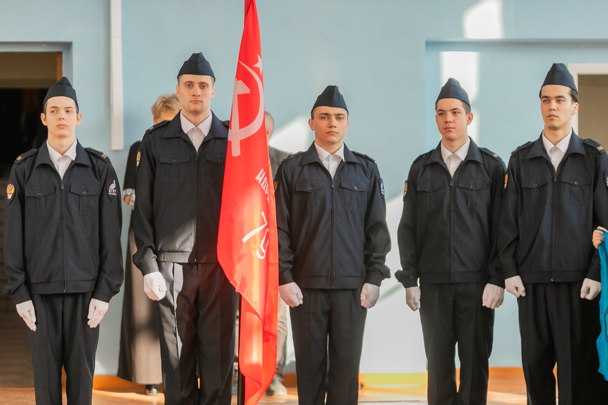 В торжественной обстановке состоялся вынос копии Знамени Победы – символа мужества и стойкости. Участники студенческого клуба военно-спортивной подготовки и патриотического воспитания «Яугир-Воин» передали знамя директору Институту физической культуры и здоровья человека Николаю Черепанову. «Эстафета Знамени Победы» пройдет на всех факультетах и в институтах Акмуллинского университета. Каждое учебное подразделение станет хранителем копии Знамени на протяжении одной недели. Завершится эстафета 5 мая, когда копия Знамени Победы вместе с государственными флагами будет поднята на площади перед вузом.
