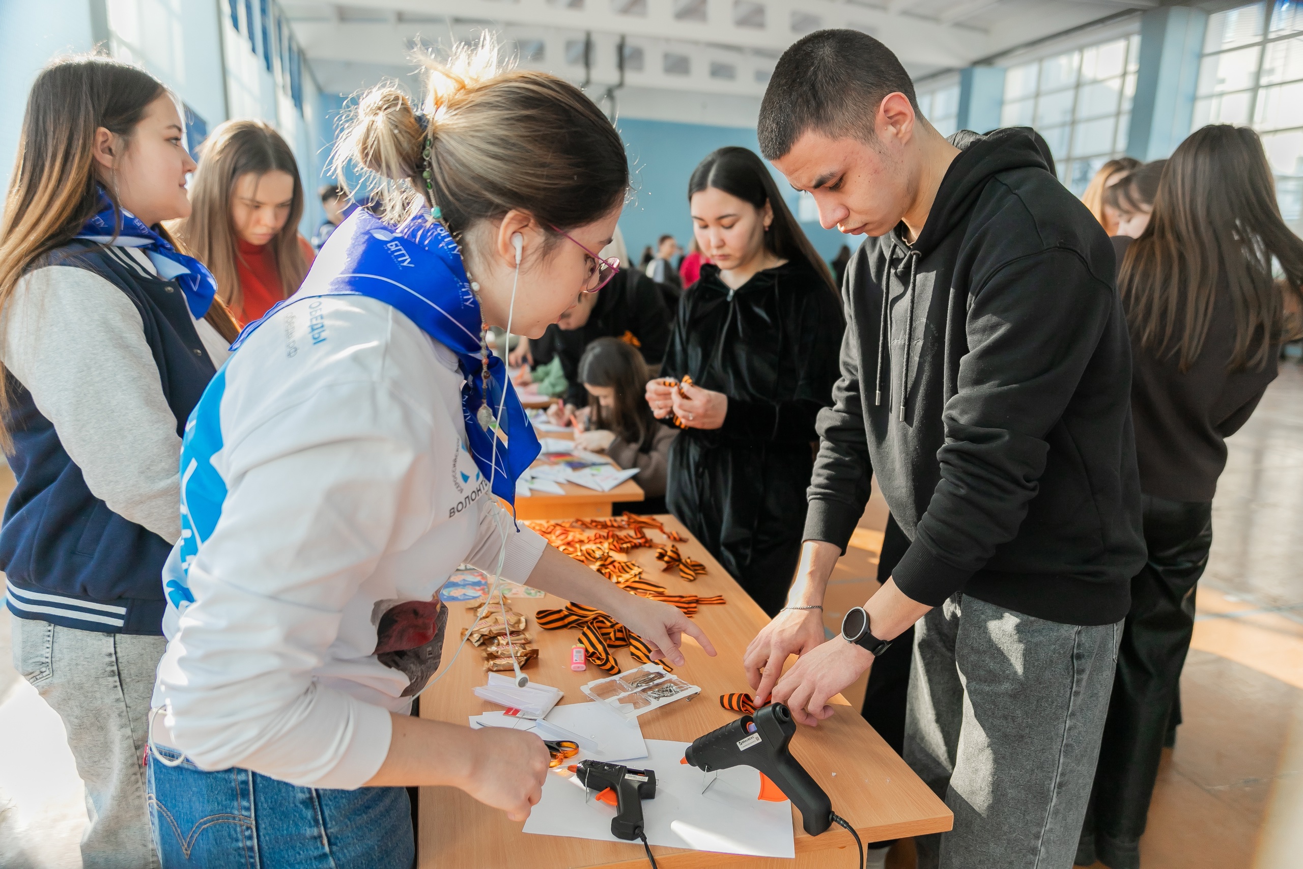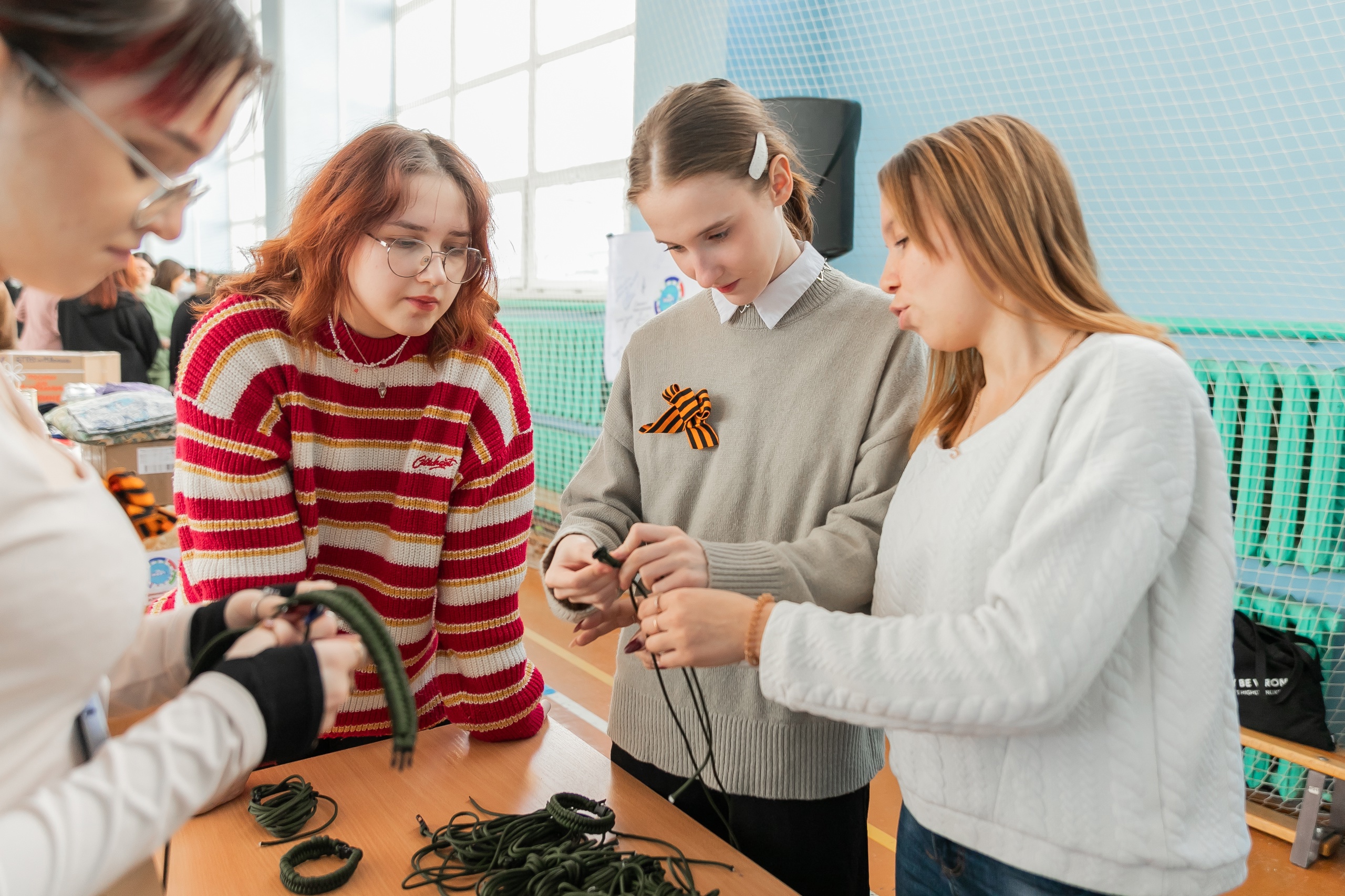 Студенты Института исторического, правового и социально-гуманитарного образования, преподаватели и гости приняли активное участие в тематических мастер-классах, спортивных играх и акциях военно-спортивного фестиваля. На мастер-классе по созданию брошей из Георгиевской ленты можно было своими руками изготовить памятное украшение, которое станет символом уважения к подвигу ветеранов. Под руководством опытных инструкторов студенты осваивали навыки создания маскировочной сети, важного элемента военной тактики, и создания браслетов выживания, полезных аксессуаров, которые могут стать незаменимым помощником в сложных условиях. Большой интерес юношей вызвало задание по сборке и разборке автомата. На выставке тактической медицины были представлены средства первой помощи, применяемые в боевых условиях, поблизости проводилось обучение навыкам первой помощи. Также на фестивале работали площадки акции «Письмо солдату» и пункт сбора гуманитарной помощи. Все предметы, сделанные на мастер-классах, также пополнили гуманитарный груз от университета, который в скором времени отправится в зону СВО. Любители спорта состязались в перетягивании каната, настольном теннисе и шахматах. Знатоки истории проверяли свою эрудицию с помощью игры-лото и отвечали на вопросы викторины от «Движения Первых».