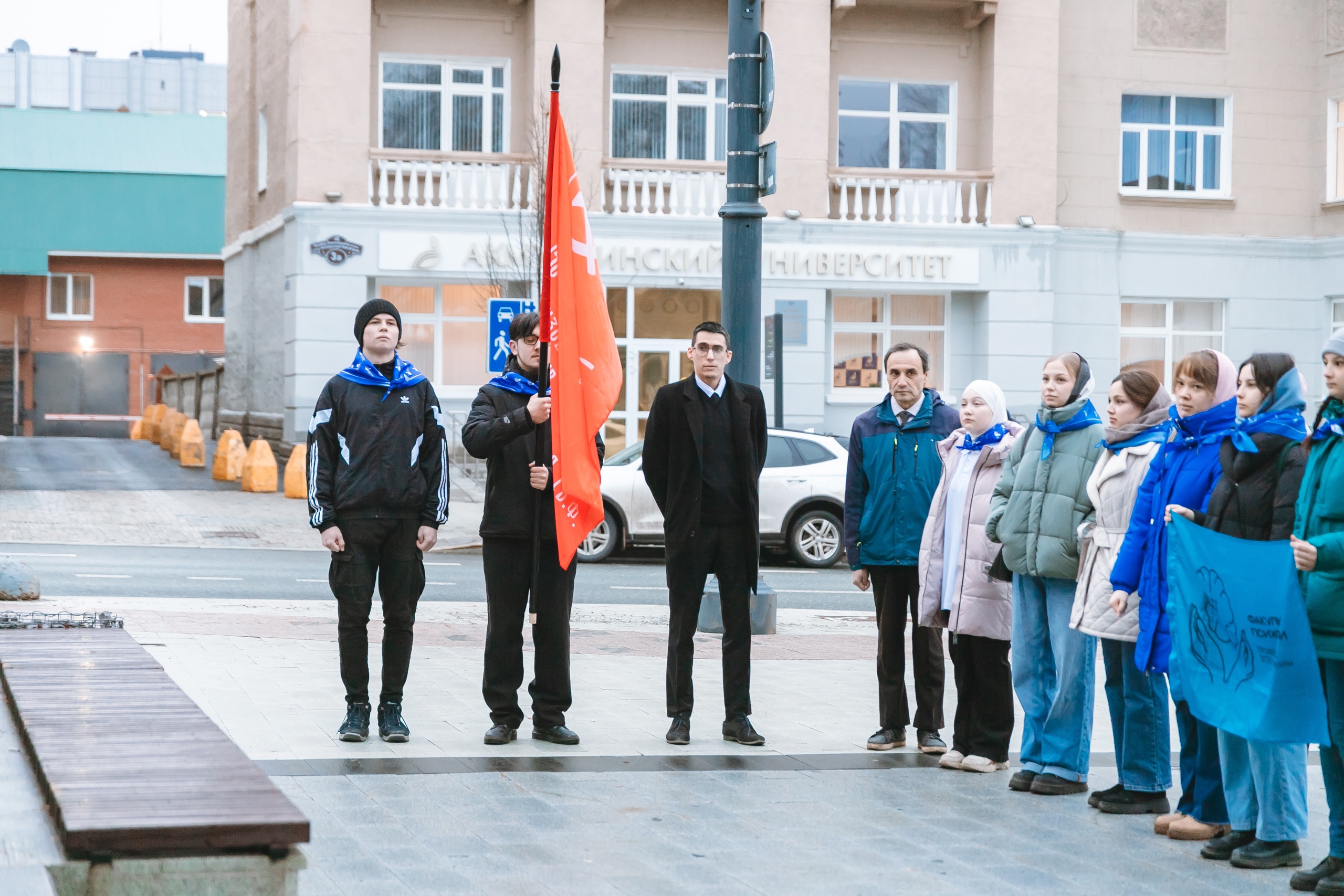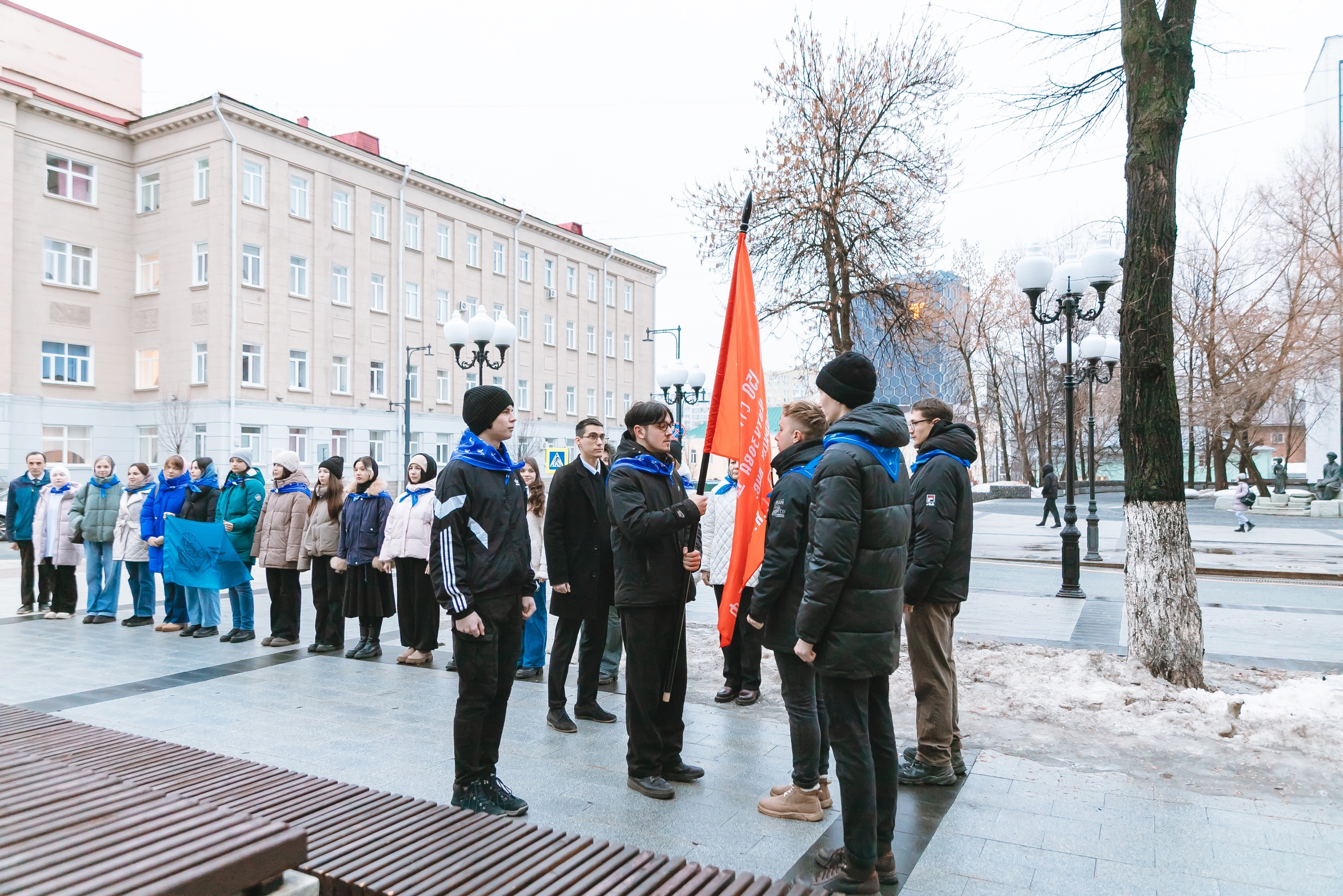 Передача копии знамени Победы активистам Института исторического, правового и социально-гуманитарного образования