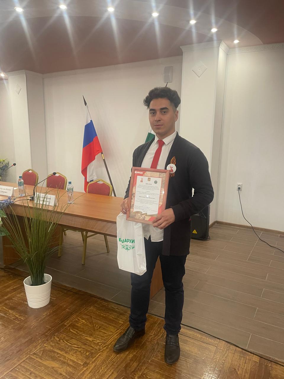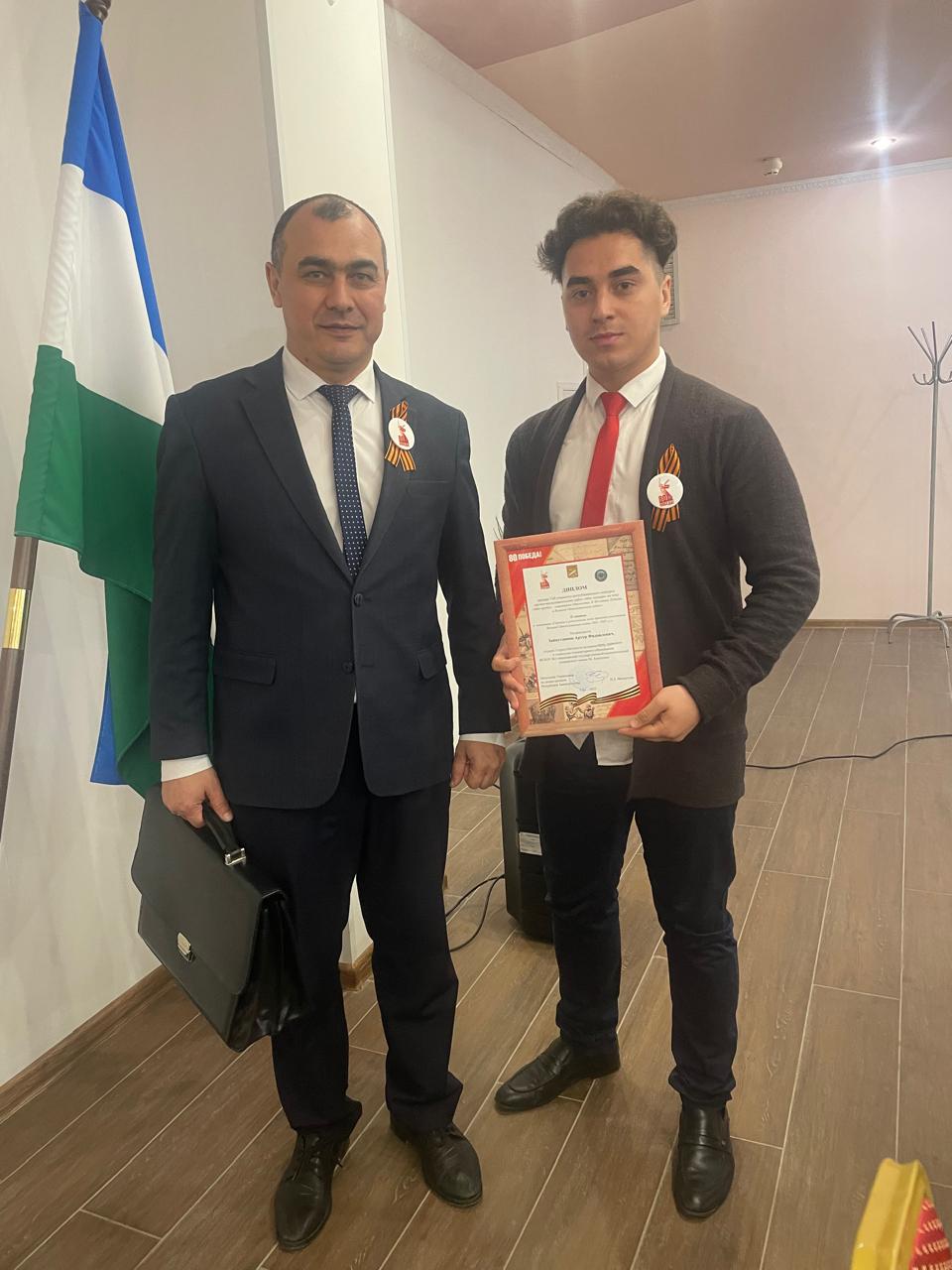 Студент 1 курса Института исторического, правового и социально-гуманитарного образования (ИИПСГО) Артур Зайнутдинов стал лауреатом в номинации «Героизм и родословная моих прадедов – участников Великой Отечественной войны 1941–1945 гг.».