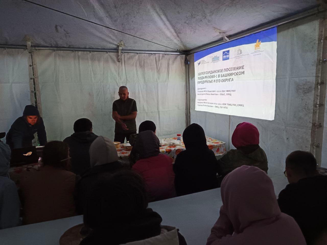 «Студенты БГПУ им. Акмуллы принимают участие в экспедиции уже второй год. Раскопки ведутся на крупном средневековом поселении XIV века, золотоордынского времени. Находки и масштабы раскопок поражают – зафиксированы большие хозяйственные комплексы, углубленные в грунт, детали быта насельников дополнены находками ювелирных украшений, металлических, глиняных изделий. Образовательный процесс в рамках производственной практики был дополнен лекциями и презентациями в вечернее время. Студенты ознакомились с методикой проведения археологических исследований – полевая фиксация находок, археологический рисунок (зарисовка находок), полевая топография, фиксация и шифровка находок».
