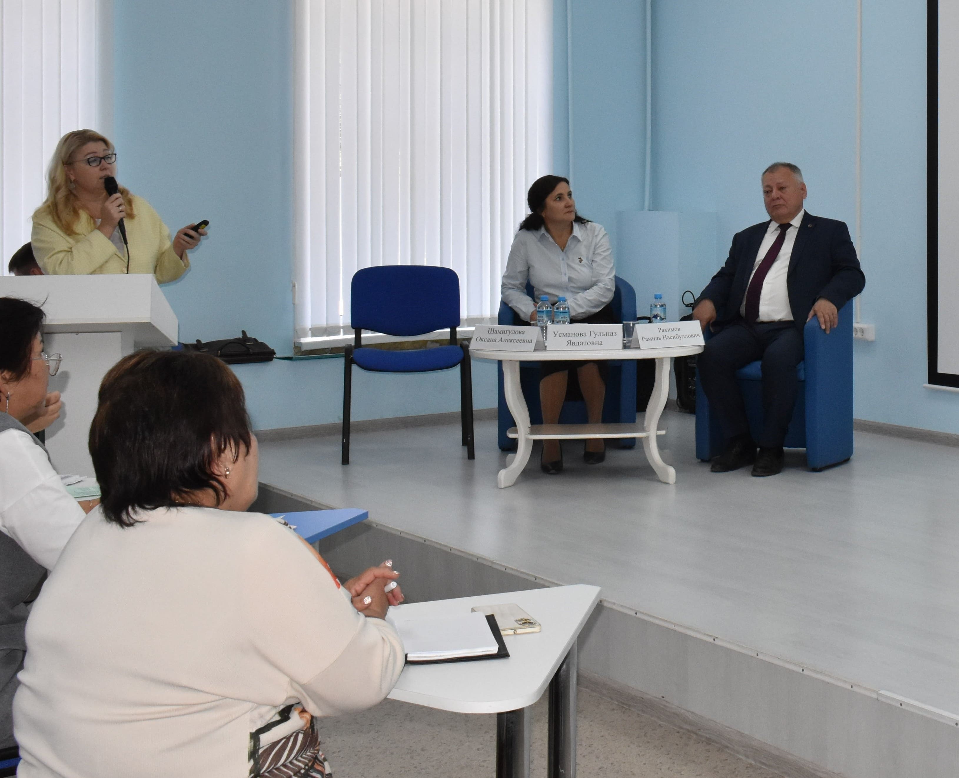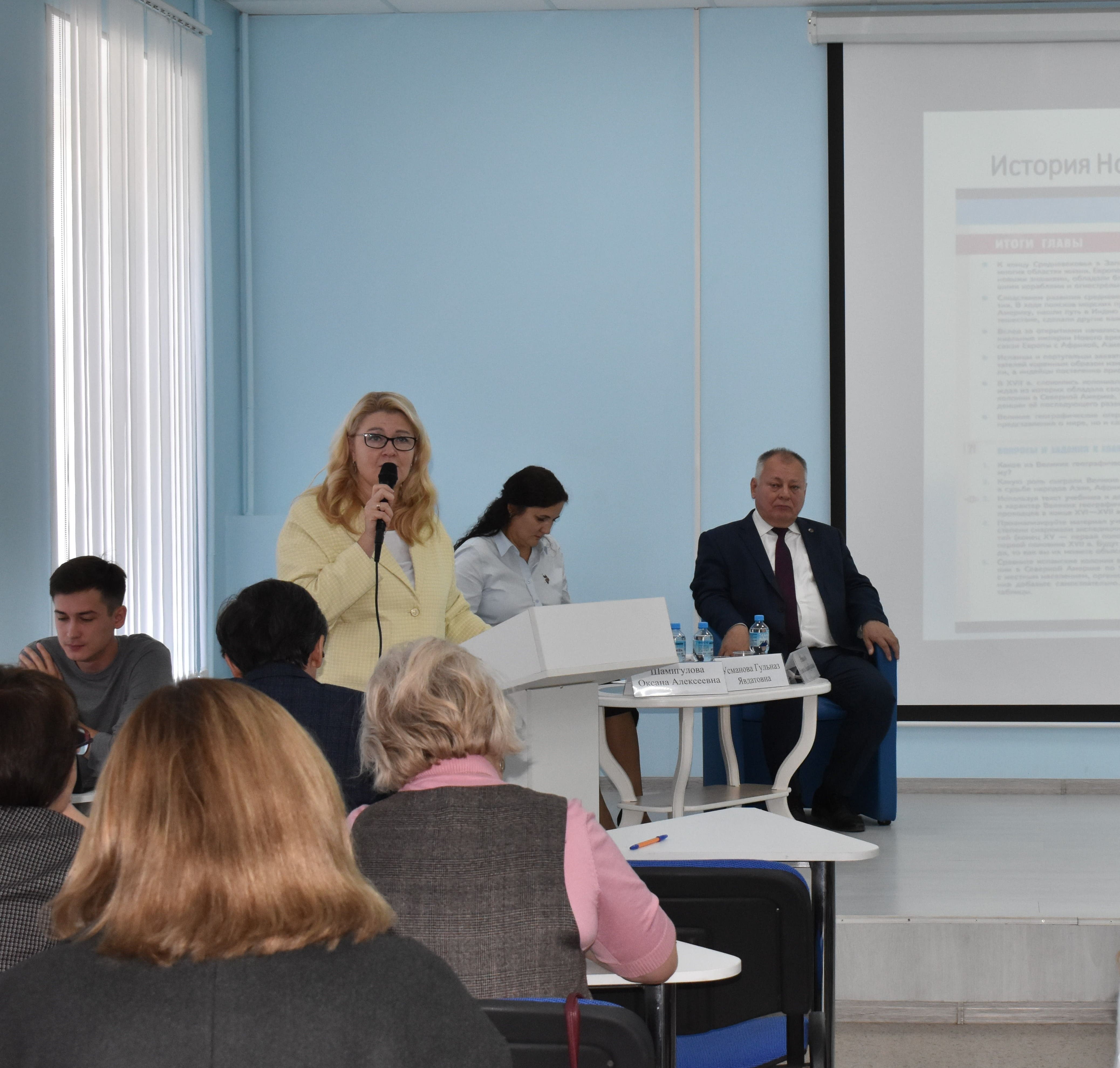 Оксана Шамигулова,  директор Института исторического, правового и социально-гуманитарного образования БГПУ им. М.Акмуллы, кандидат педагогических наук, с докладом «О преподавании дисциплин предметной области «Общественно-научные предметы» в 2025-2026 учебном году;