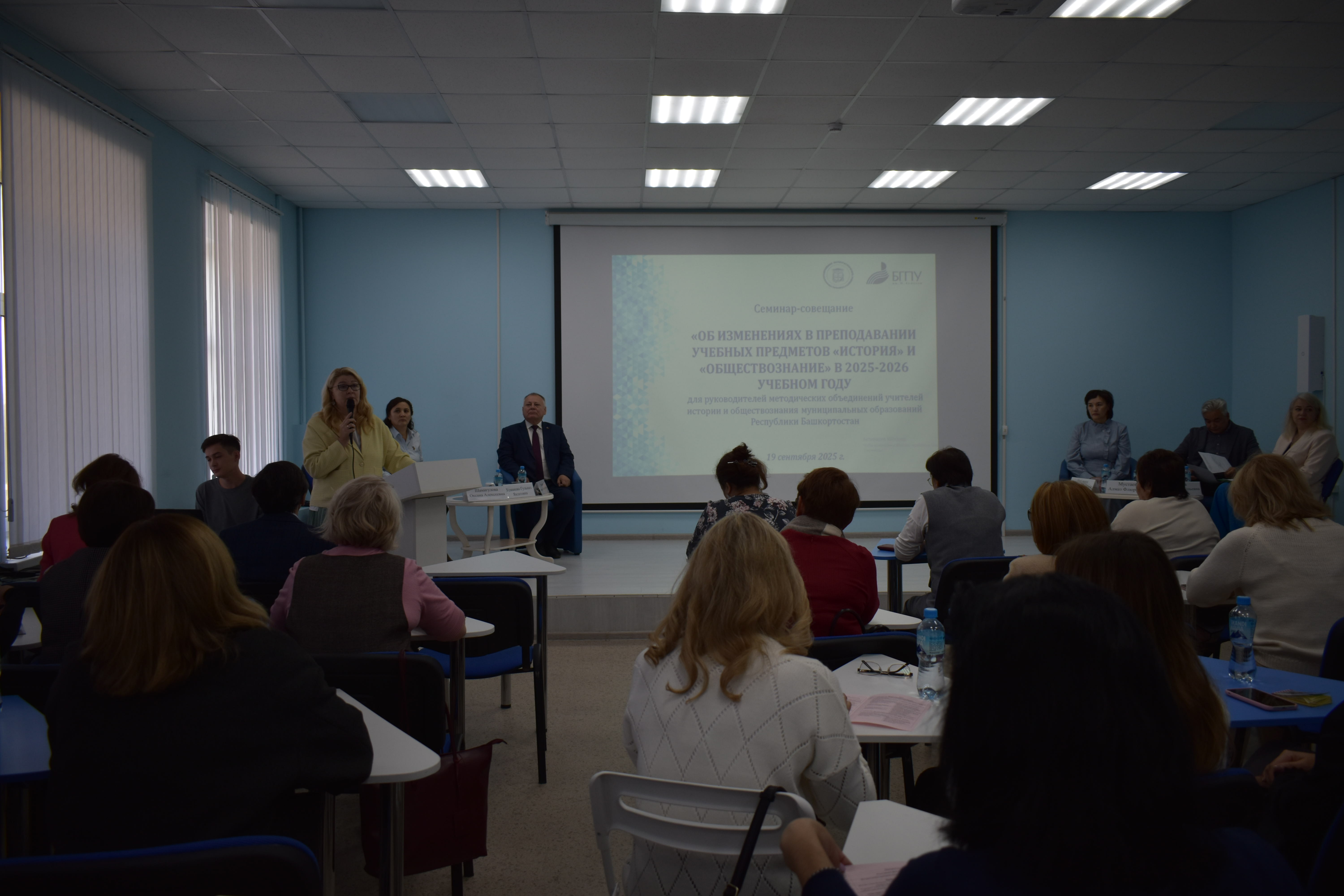 19 сентября  на базе Института исторического, правового и социально-гуманитарного образования Акмуллинского университета состоялся семинар - совещание с руководителями методических объединений учителей истории и обществознания муниципальных образований Республики Башкортостан. Оно было посвящено изменениям в преподавании учебных предметов «История» и «Обществознание» в 2025-2026 учебном году.