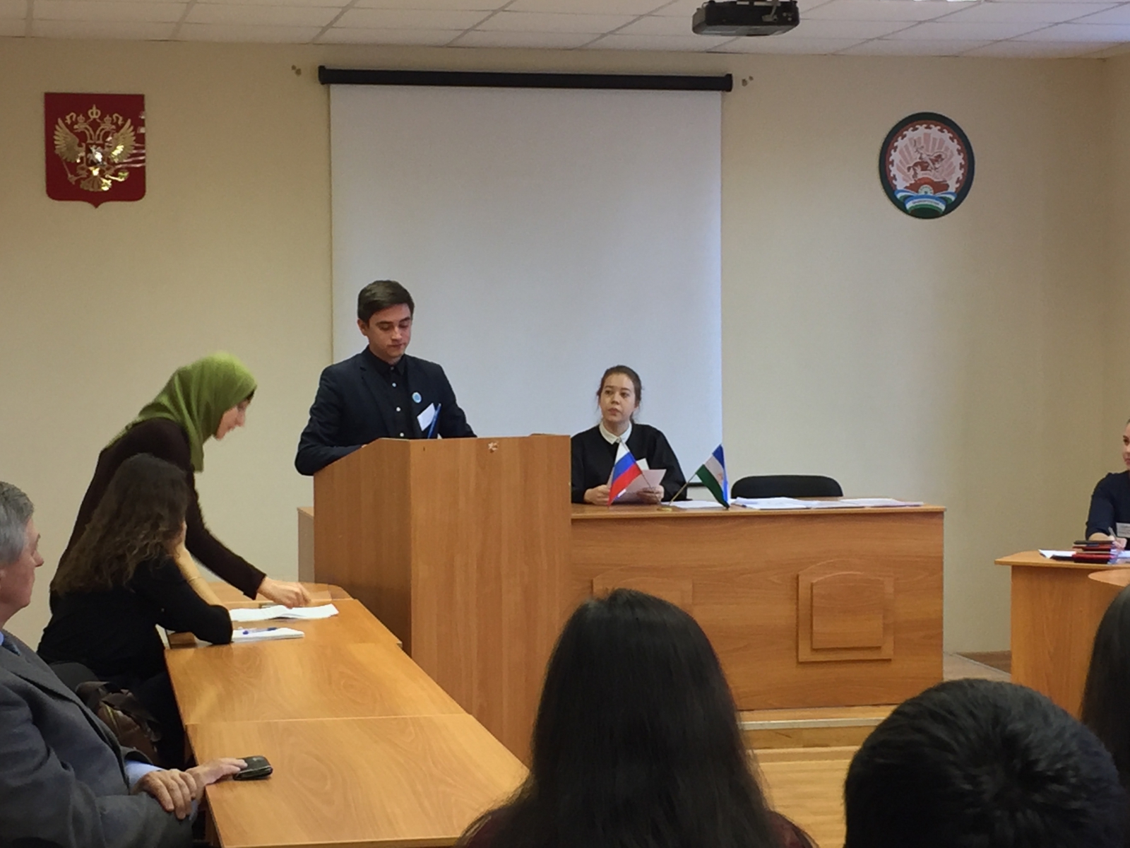 В рамках реализации интерактивного студенческого проекта "Будущий учитель права - детям" с 16 по 29 ноября 2016 года в Институте исторического и правового образования, в аудитории 102 - "Зал судебных заседаний" преподаватели кафедры права и обществознания и студенты-старшекурсники провели открытые занятия для обучающихся школ г. Уфы.