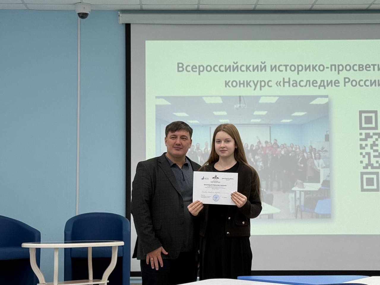 Отдельным пунктом повестки дня стала церемония награждения волонтёров Института исторического, правового и социально-гуманитарного образования. Студенты были отмечены за активное участие в историко-просветительских проектах, помощи в проведении научных конференций и поддержке патриотических инициатив. Благодарственные письма вручил Радик Зинатович, подчеркнув вклад добровольцев в сохранение исторической памяти. Директор Института исторического, правового и социально-гуманитарного образования Оксана Алексеевна Шамигулова также поблагодарила студентов за их самоотдачу и искреннюю вовлечённость, а также подчеркнула значимость их вклада в сохранение исторической памяти и развитие гражданской ответственности среди молодёжи.